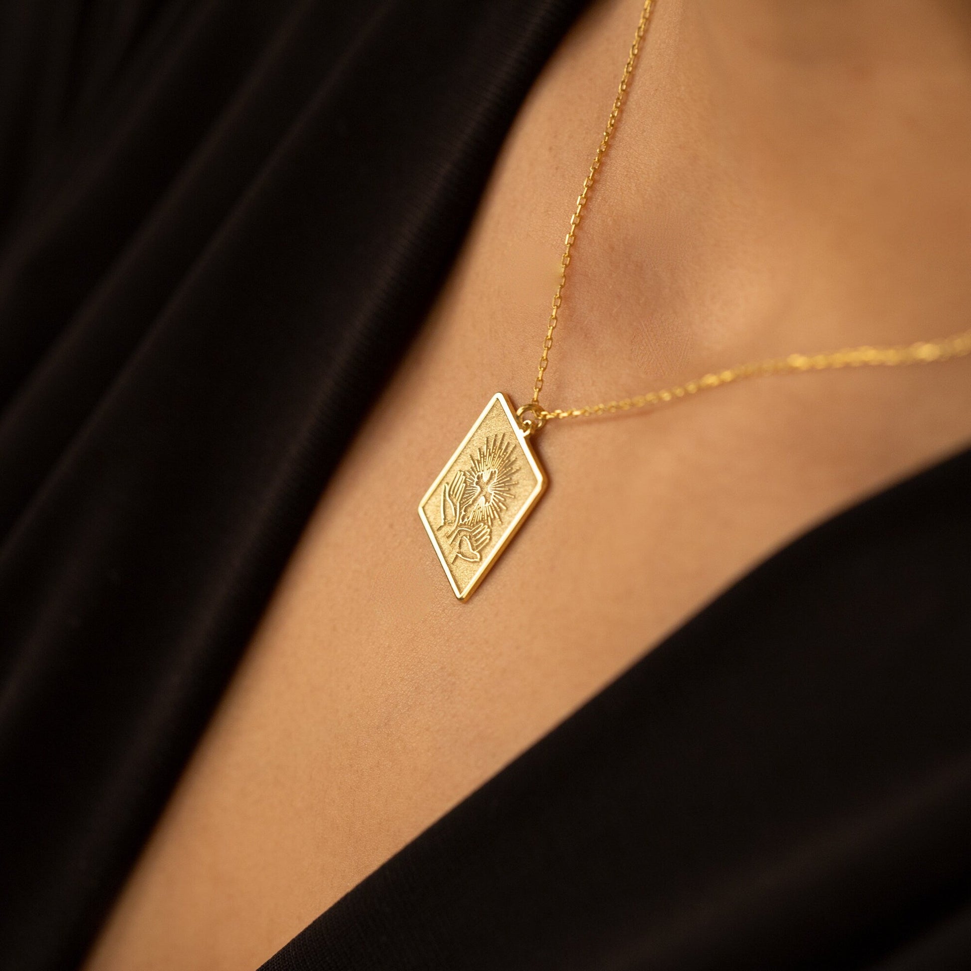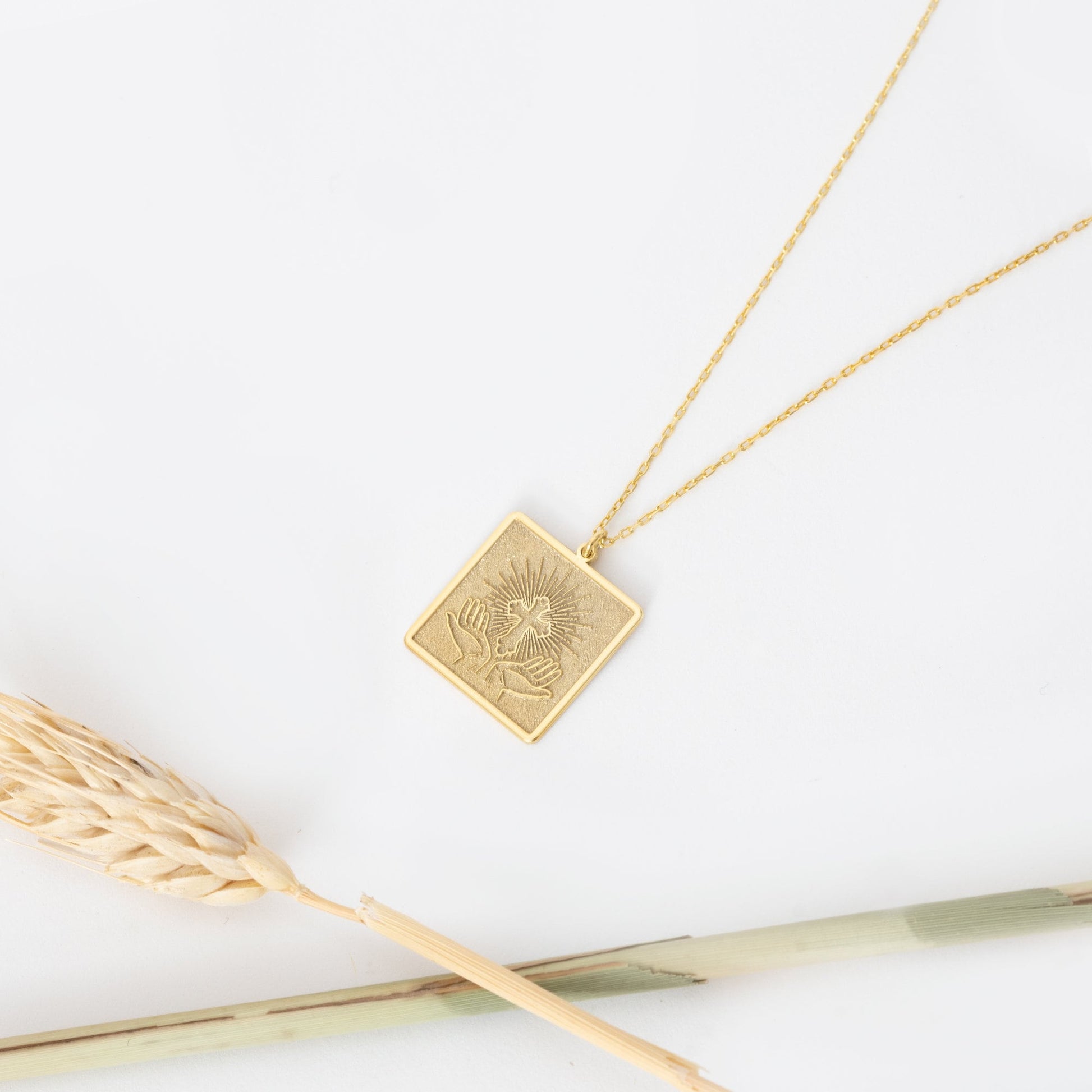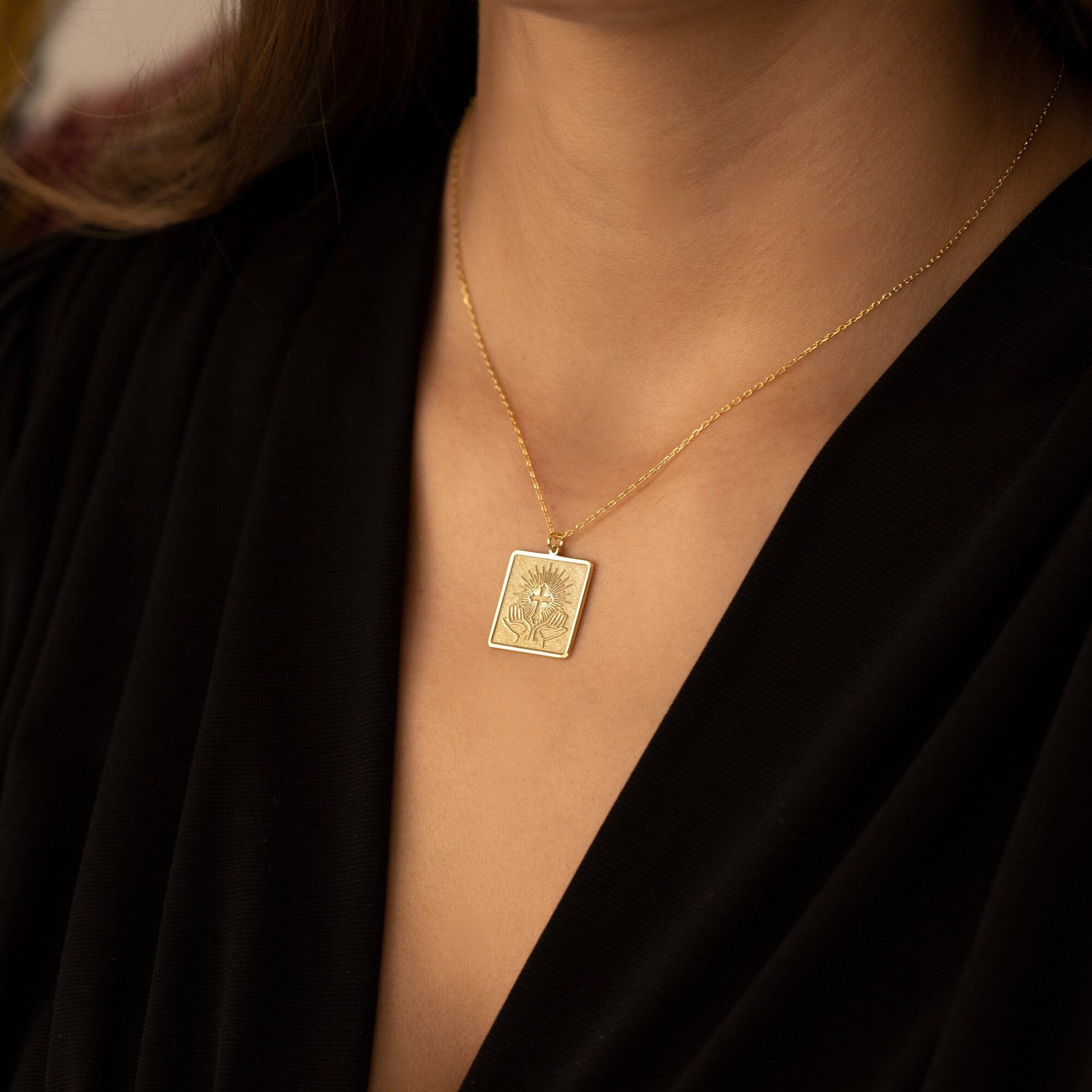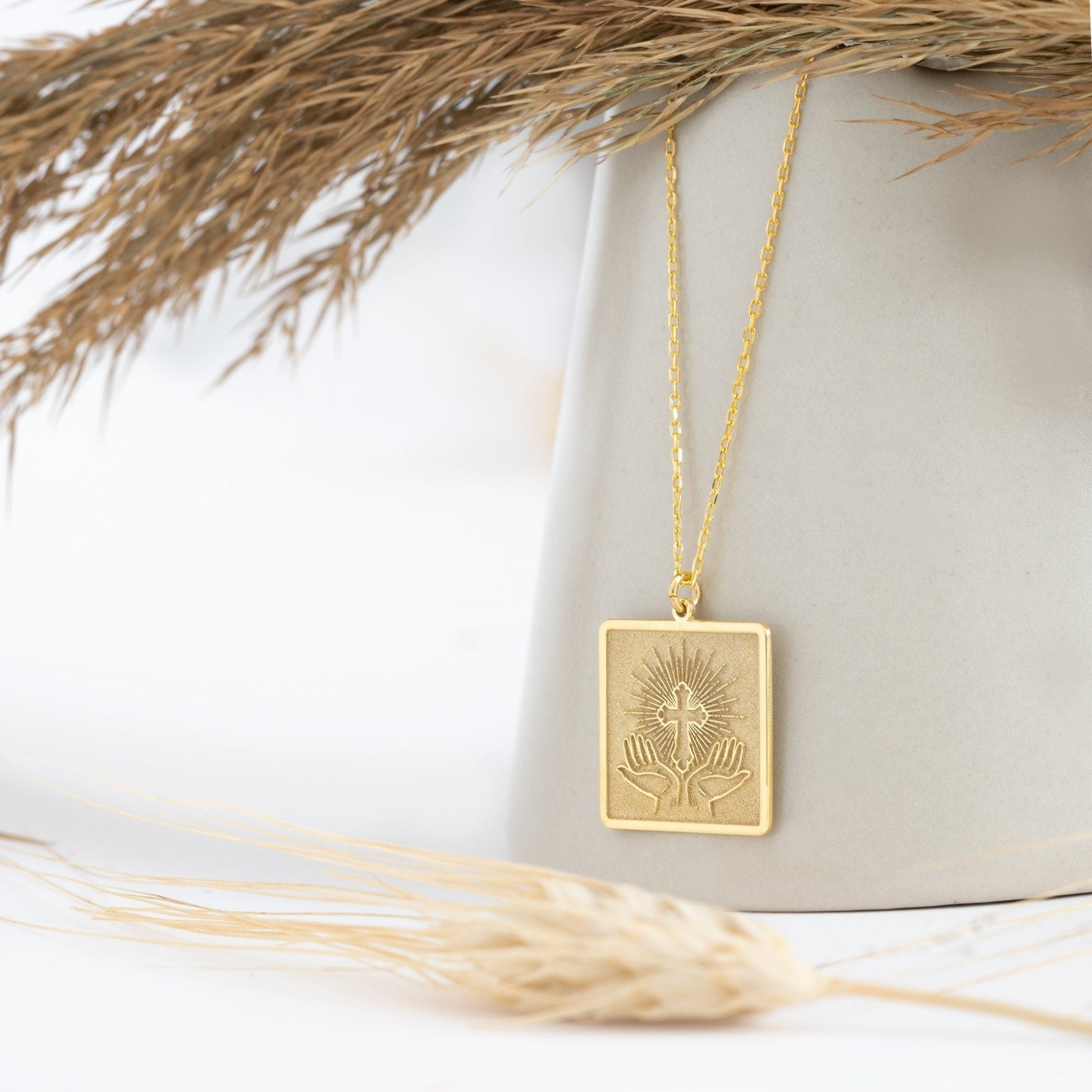 Praying hands Cross Necklace - Hands and Cross Sign Necklace - Square Cross Pendant - Dainty Cross Pendant - Religious Pendant - Baptism Gift - Christian Jewelry - Baptism Cross Gift - Christian Gifts