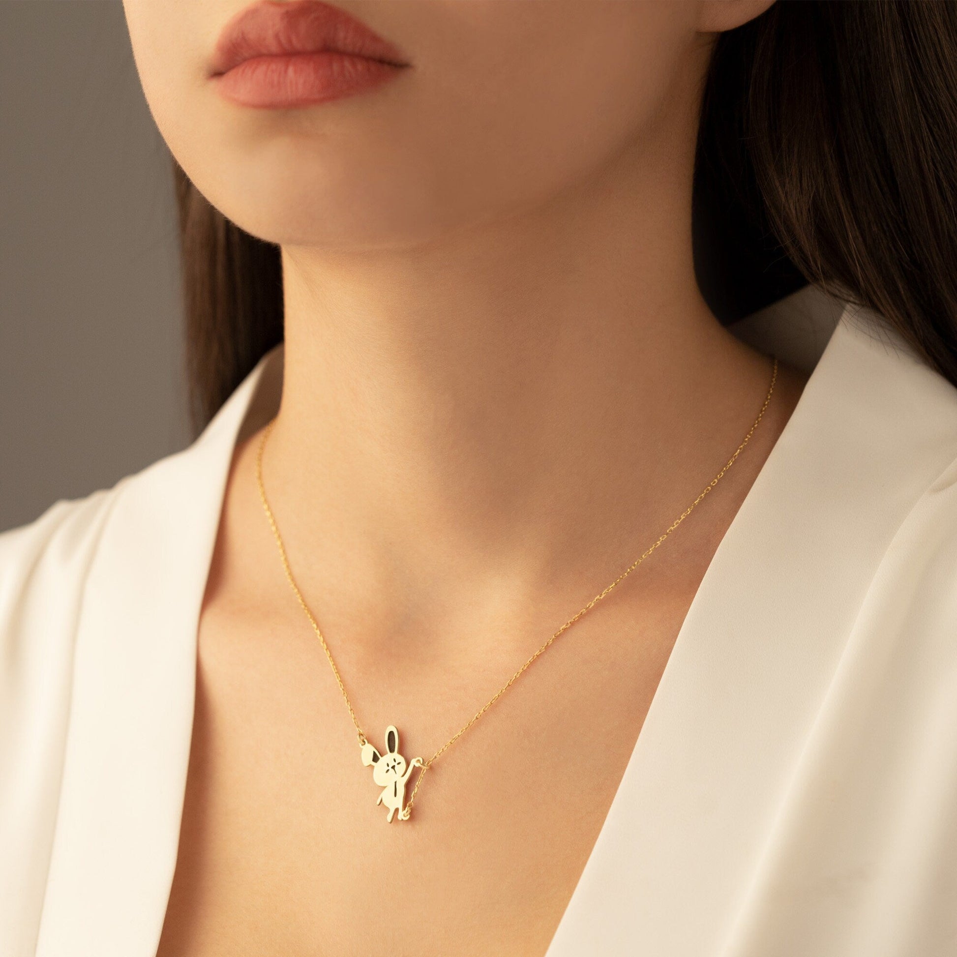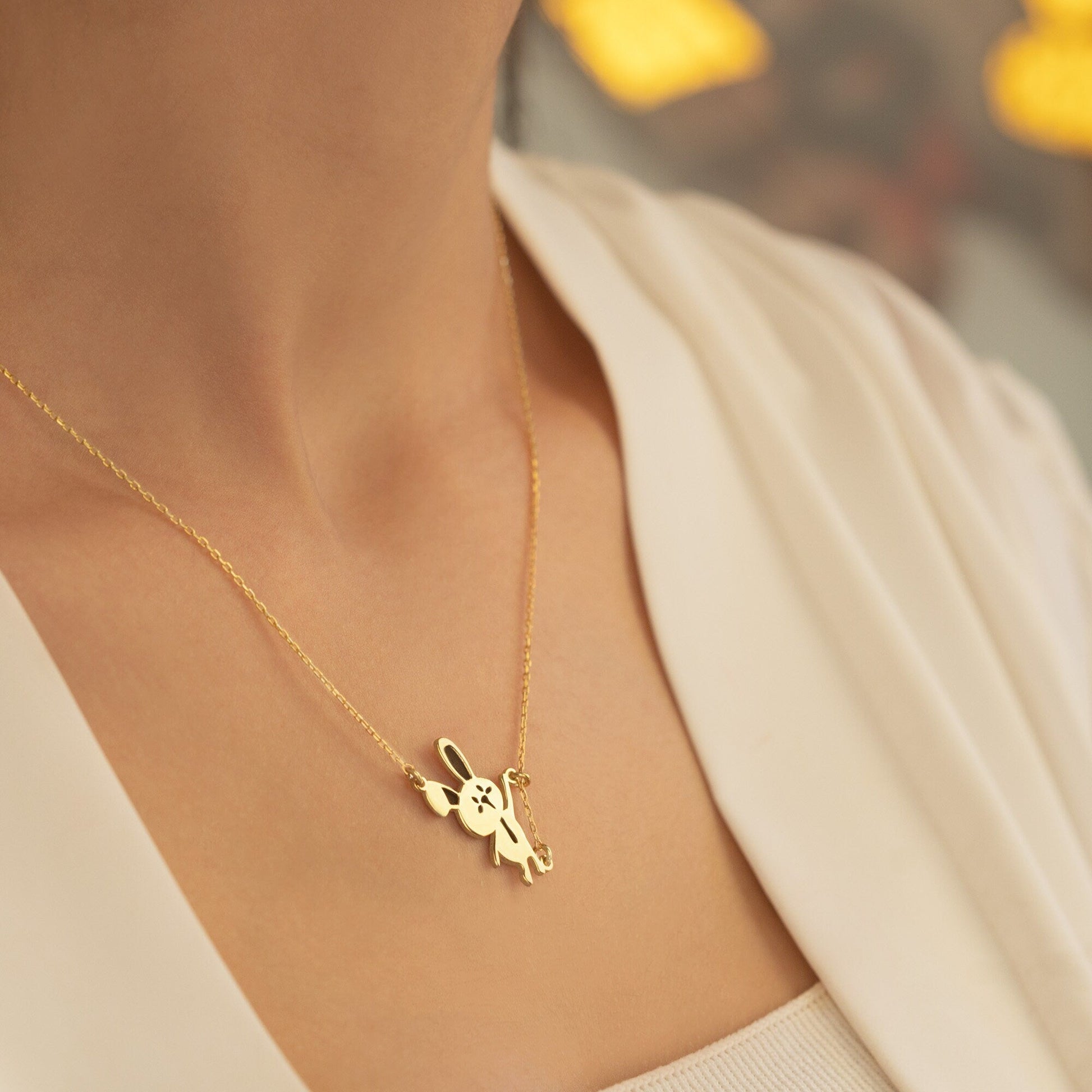 Rabbit Necklace - Halloween Earrings - Bunny Necklace - Easter Basket Gift Jewelry - Easter Necklace - Love Pet Jewelry - Gift for Kids - Easter Gift - Gift for Her