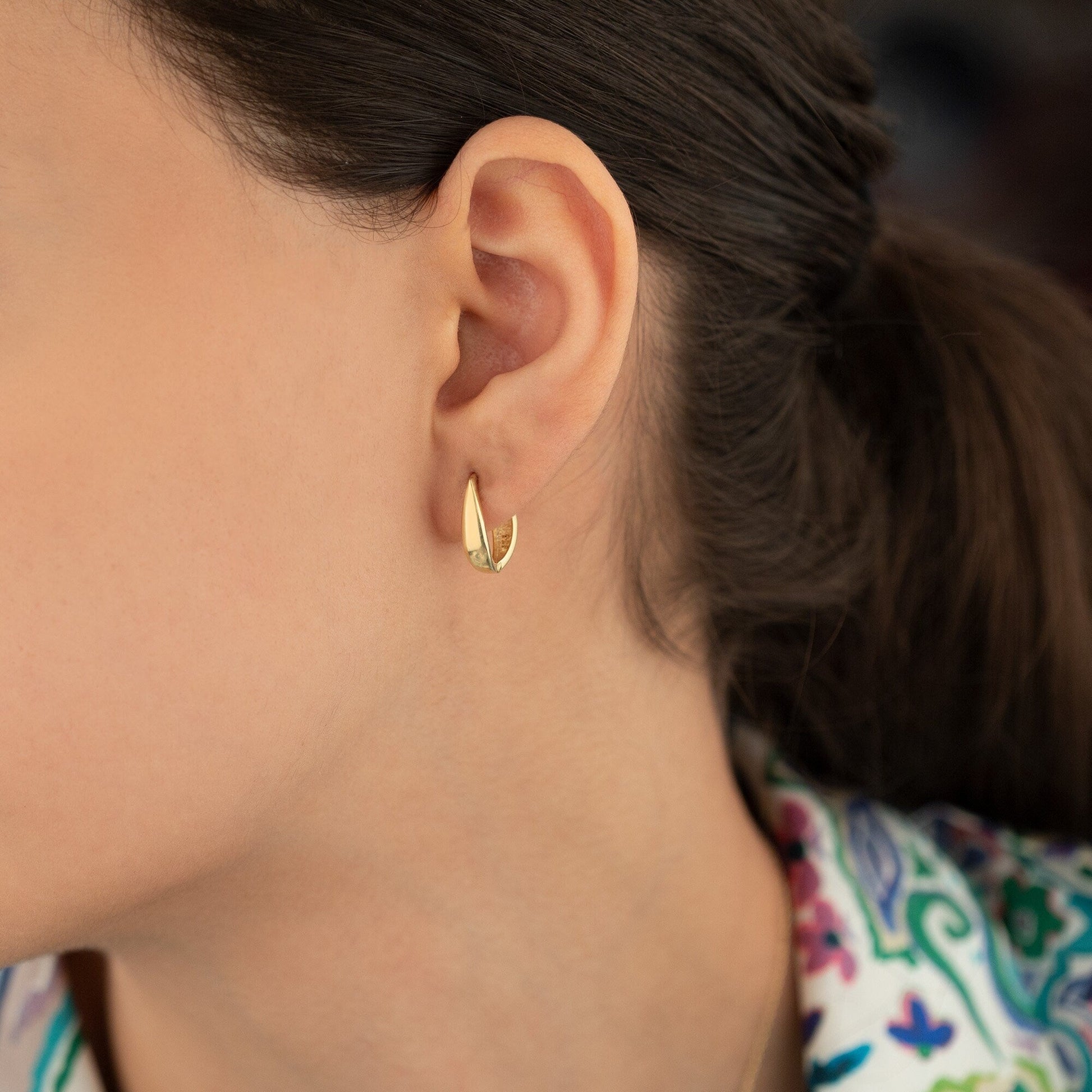 Rectangle Pave Hoop Earrings - Shiny Cable Link Earrings - Paperclip Oblong Hoop Earrings - Earring For Women - Gift for Her