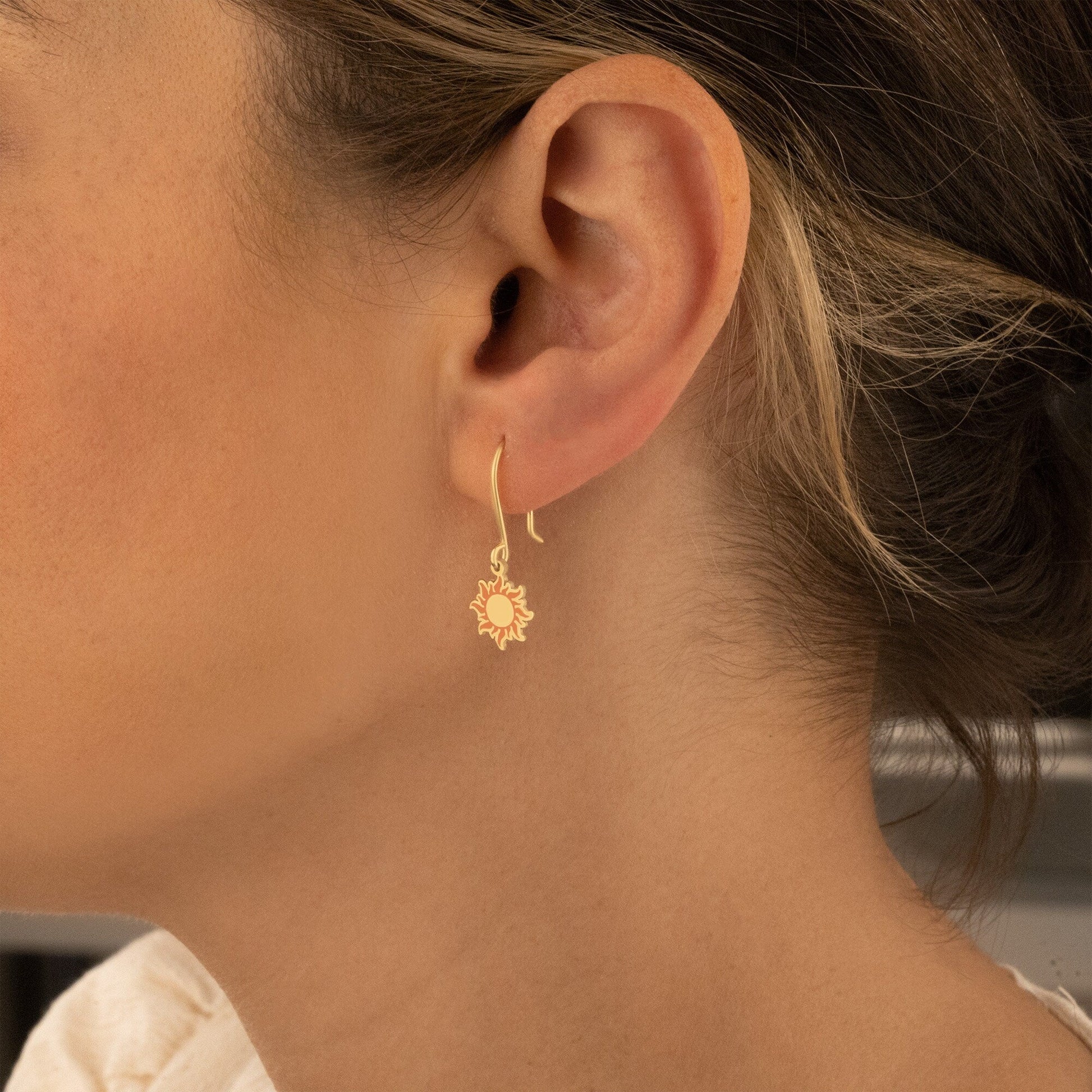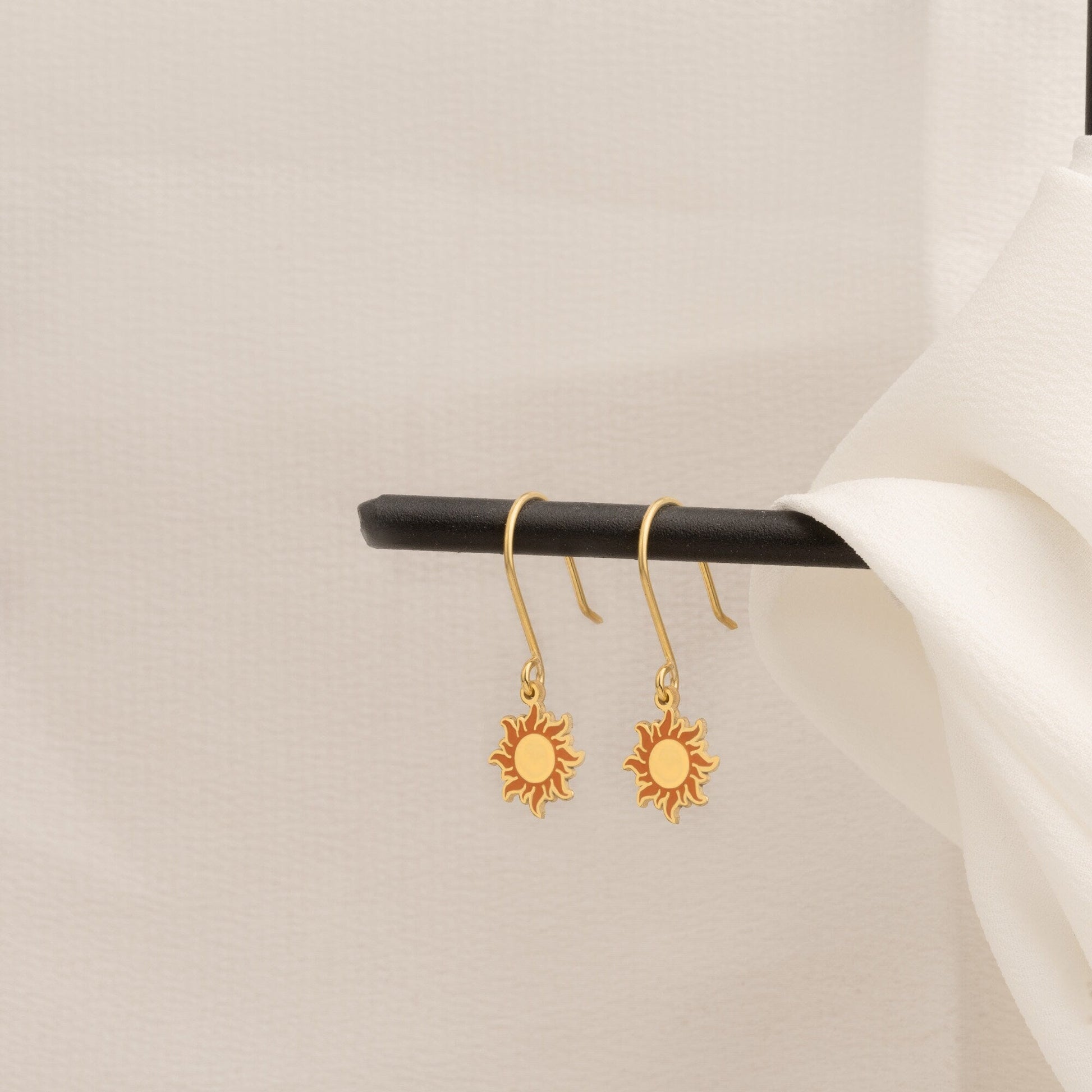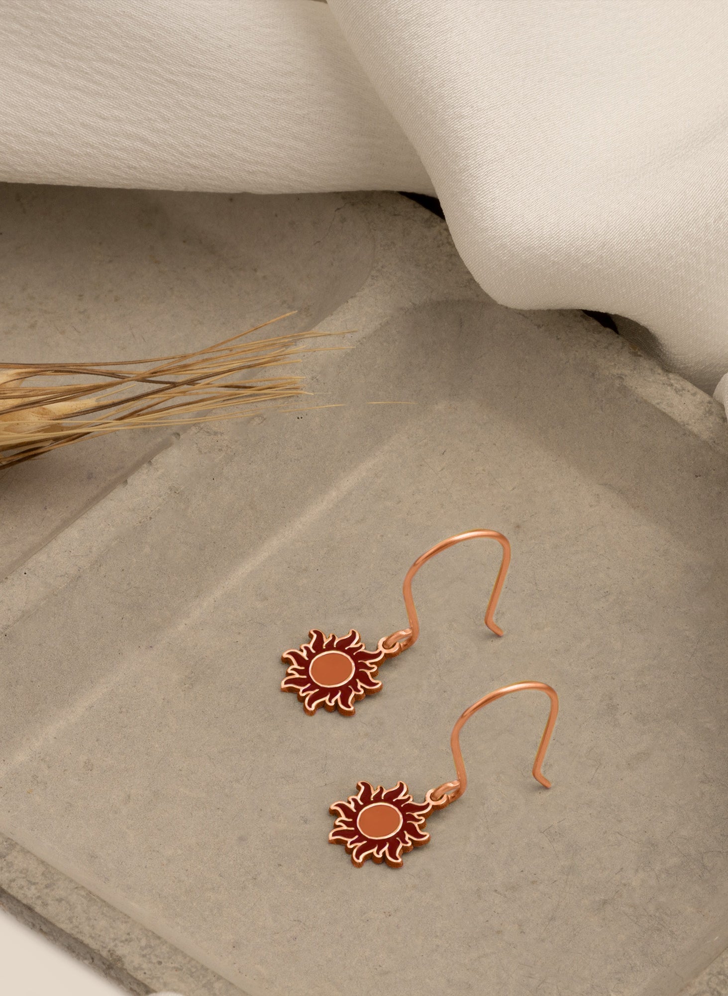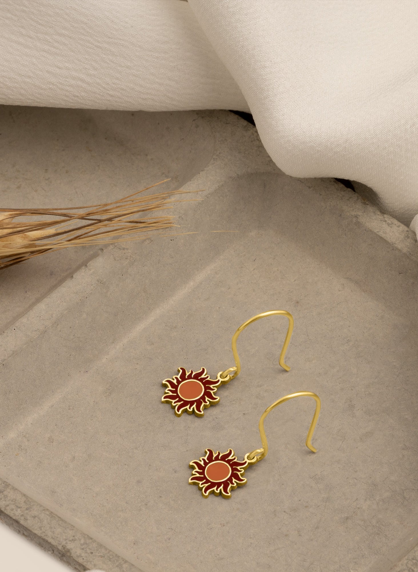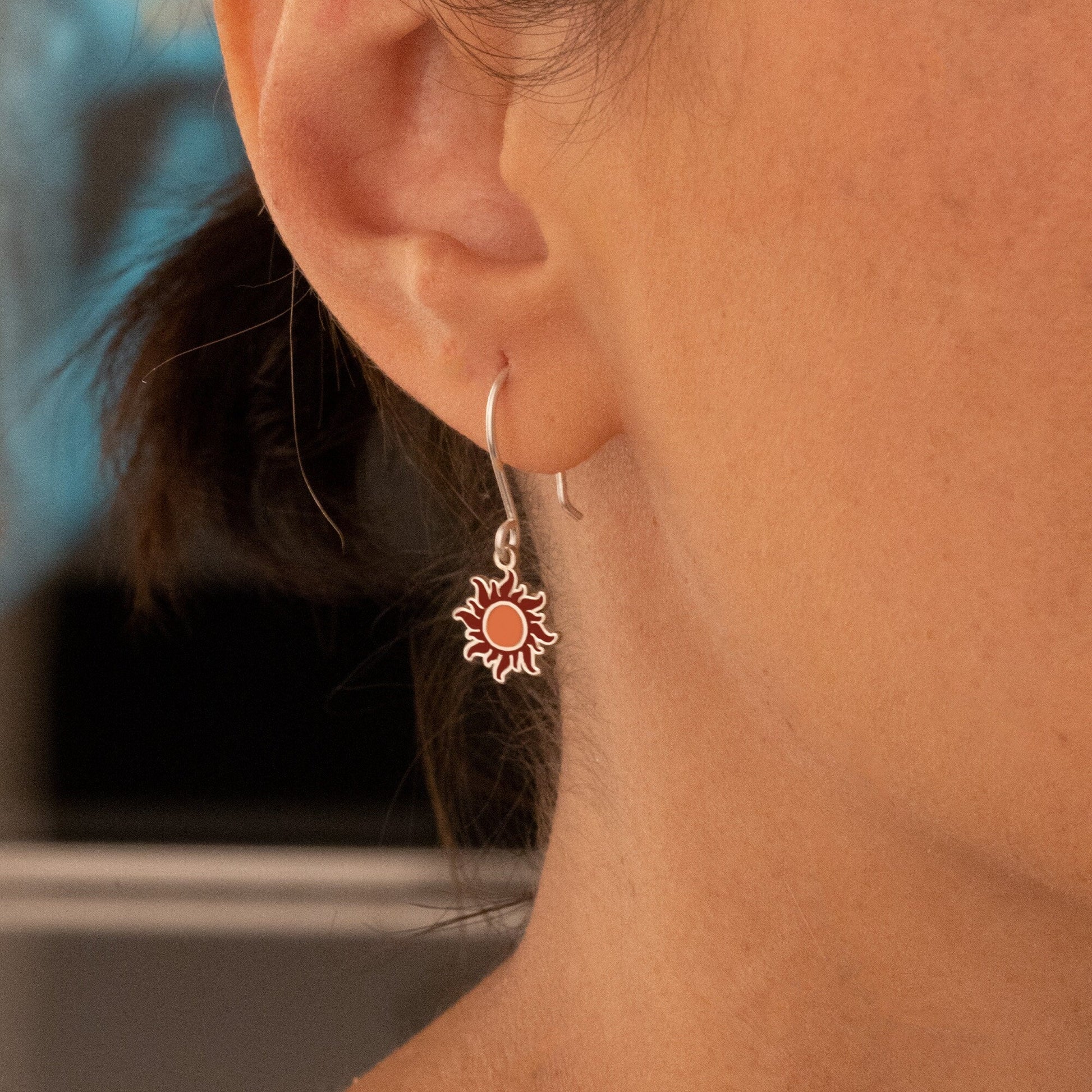 Red Sun Earrings - Orange Sun Earrings - Enamel Jewelry - Enamel Sun Necklace - Celestial Jewelry - Modern Earrings - Gift for Her