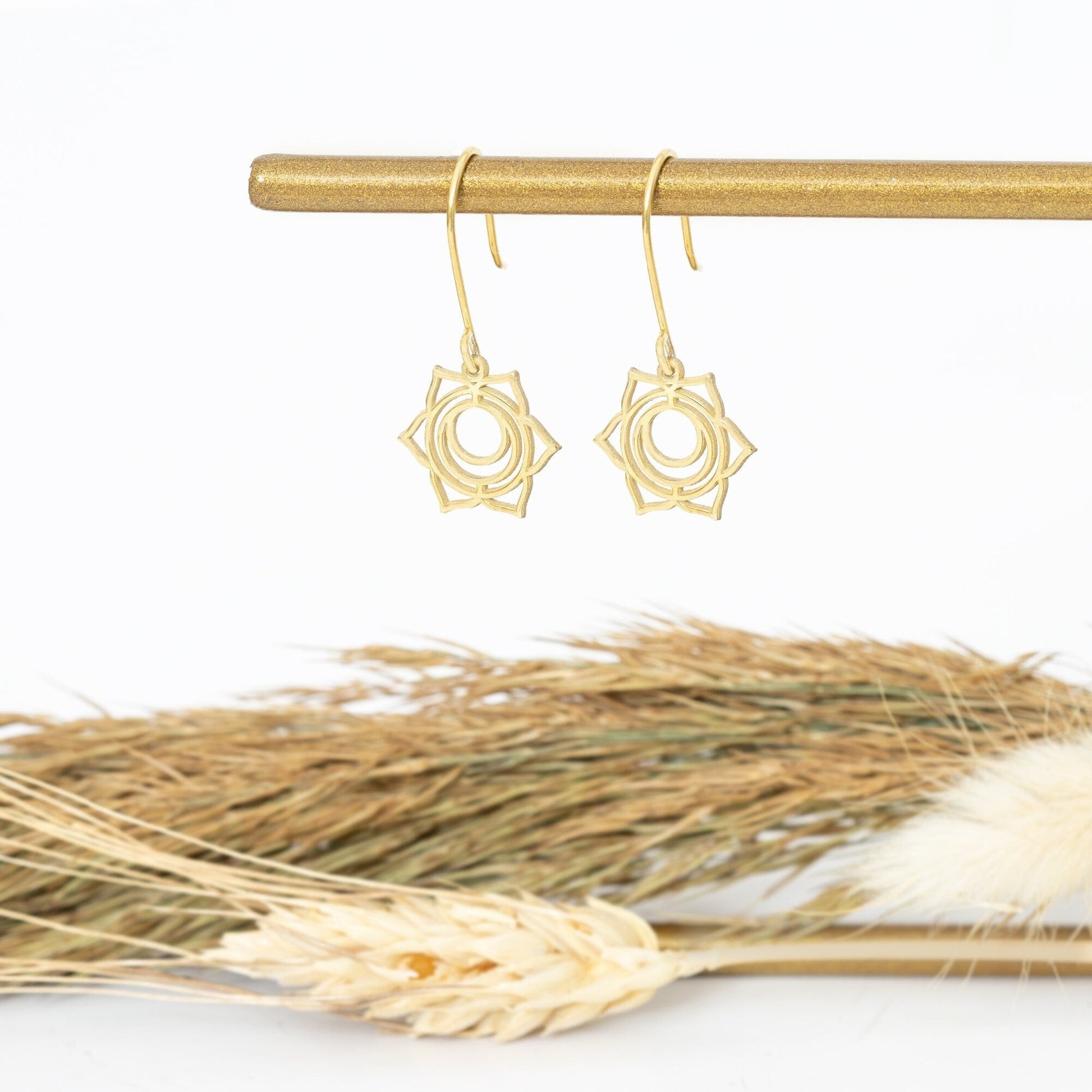 Svadhishthana is your Sacral Chakra, your center of creativity. The circles in connection with the lotus flower petals represent the cyclical nature of birth, death, and rebirth. The tangential circles also create a crescent moon shape, which is a nice reminder of the connection between creativity and the phases of the moon.