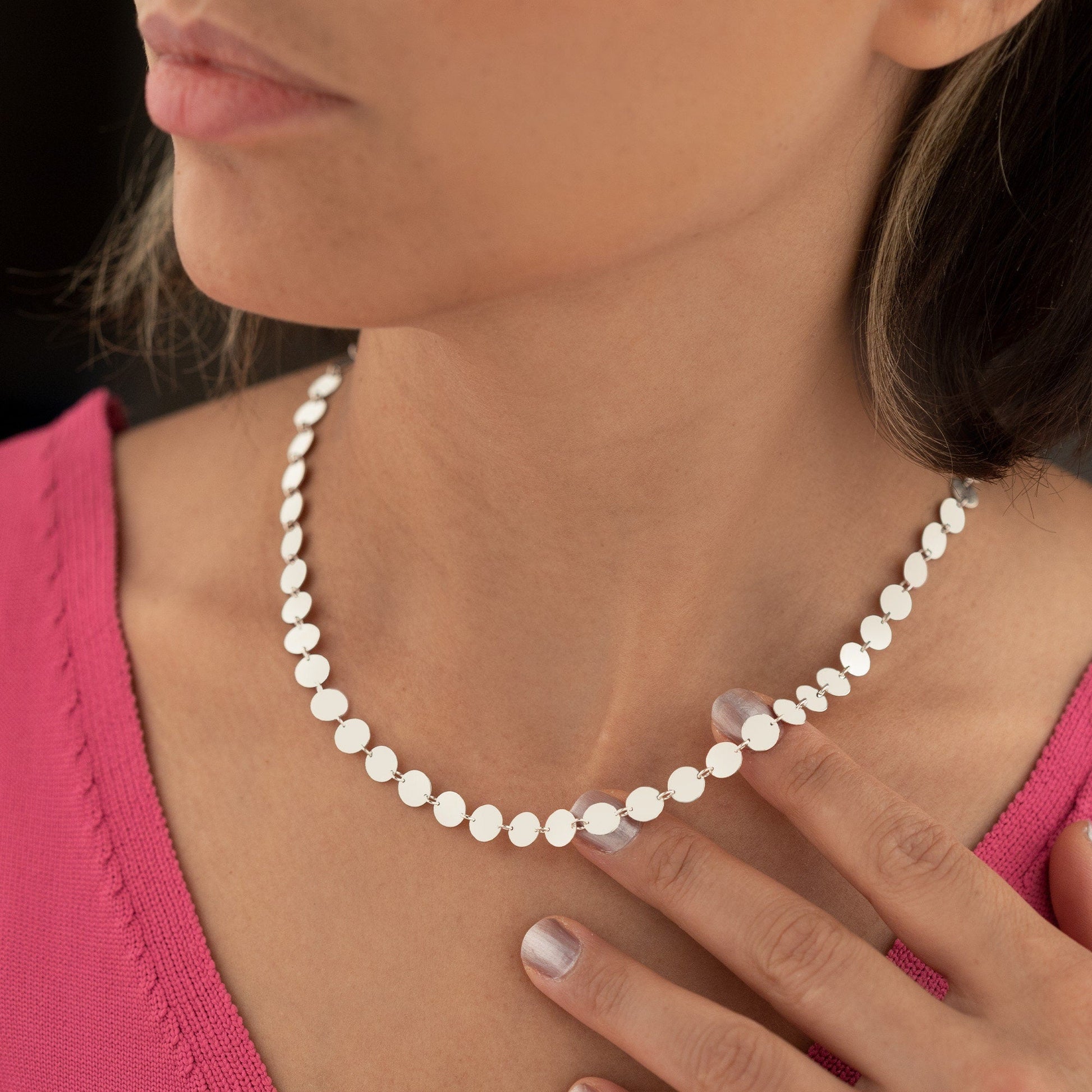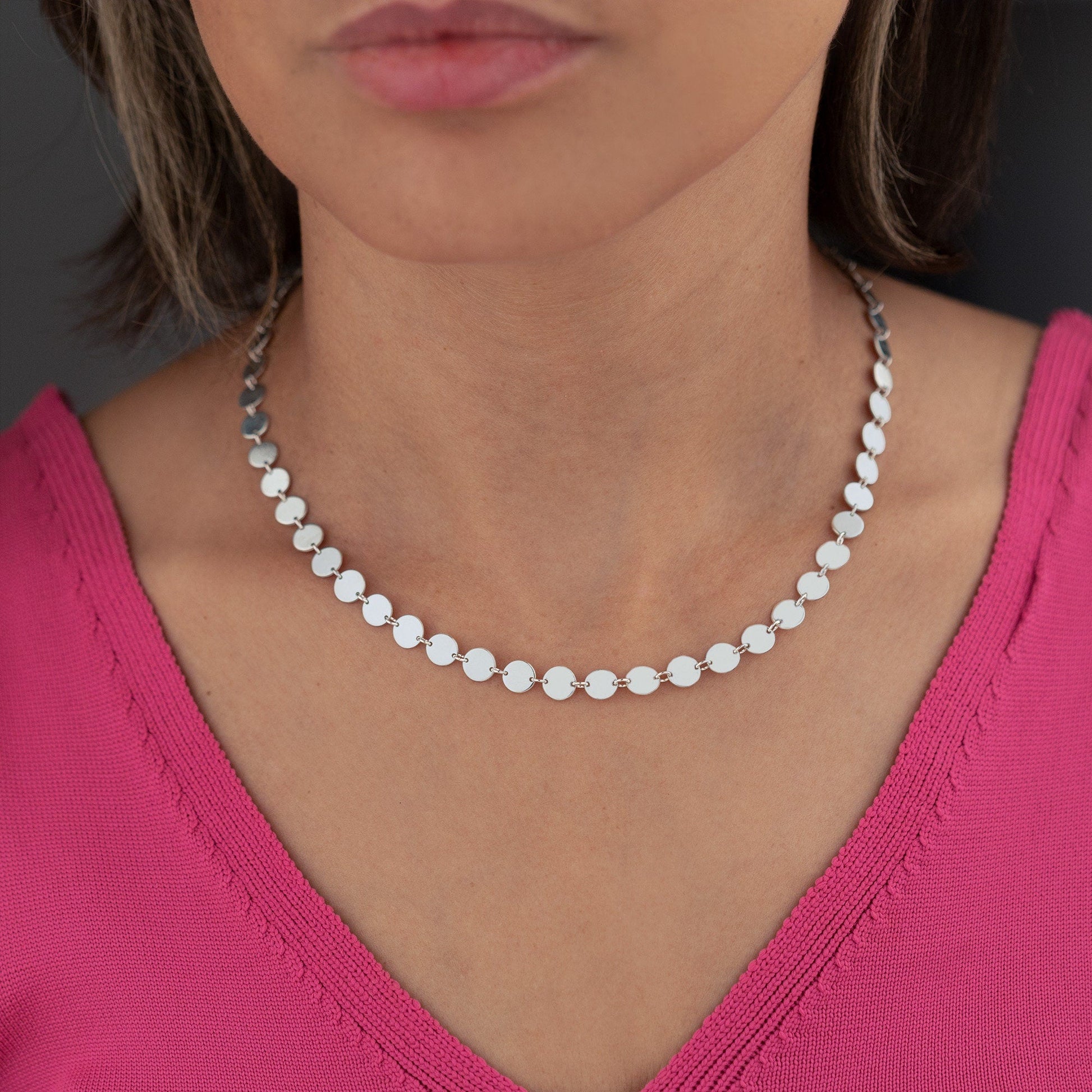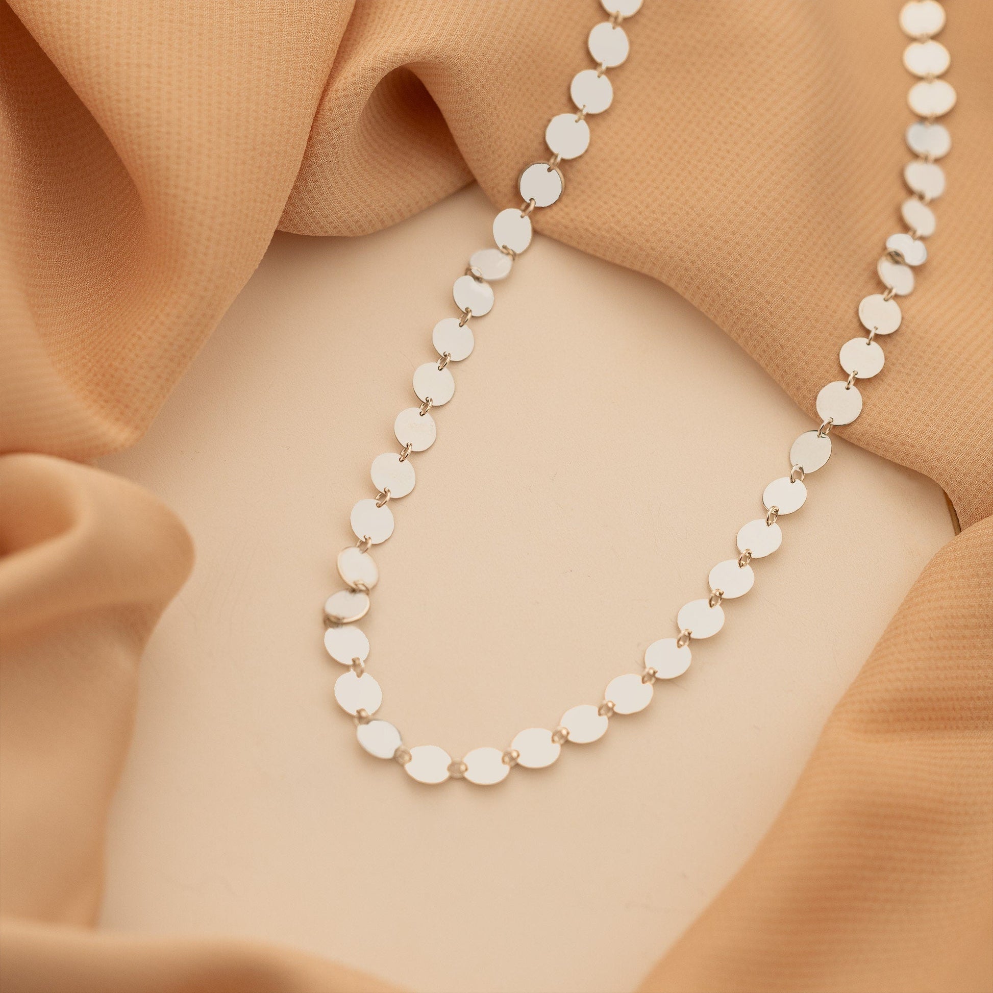 Sequin Chain Necklace - Layering Chain - Silver Chain Necklace - Circles Chain Necklace - Dainty Chain - Gift for Mother - Gift For Her - Necklace for Women