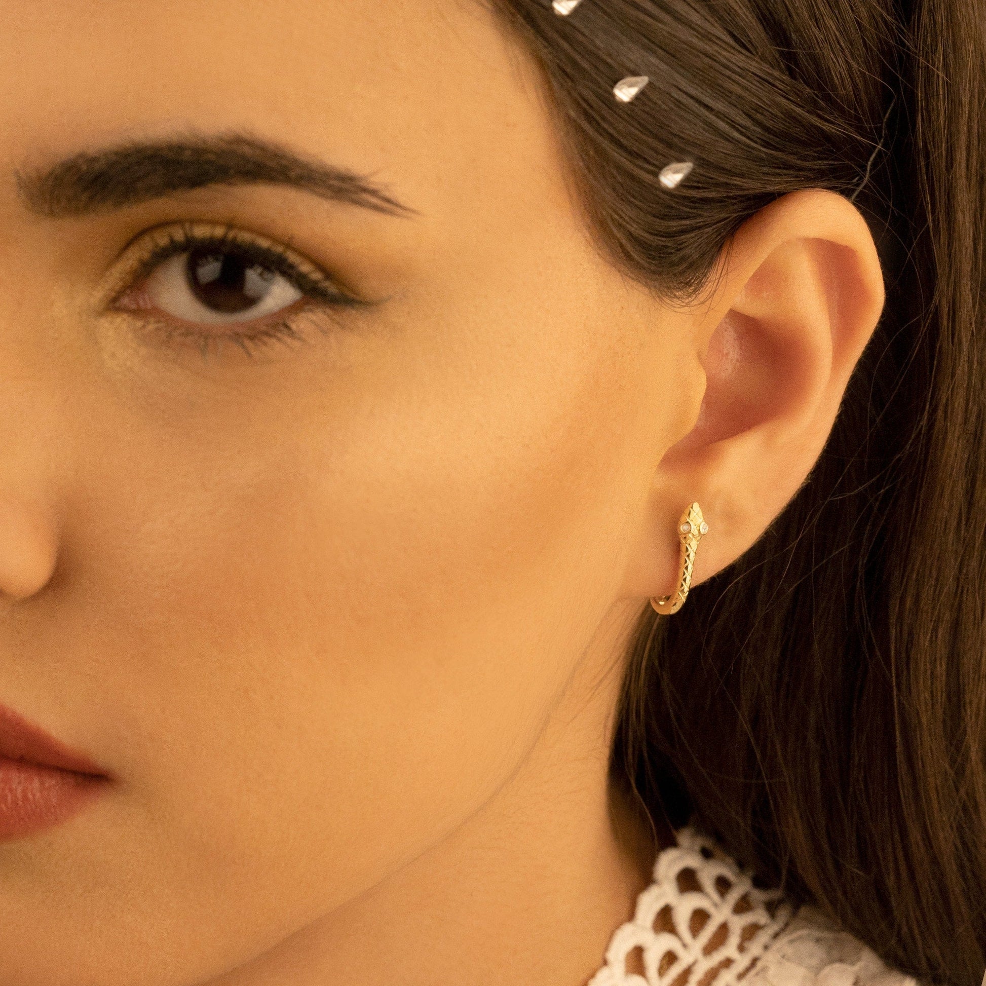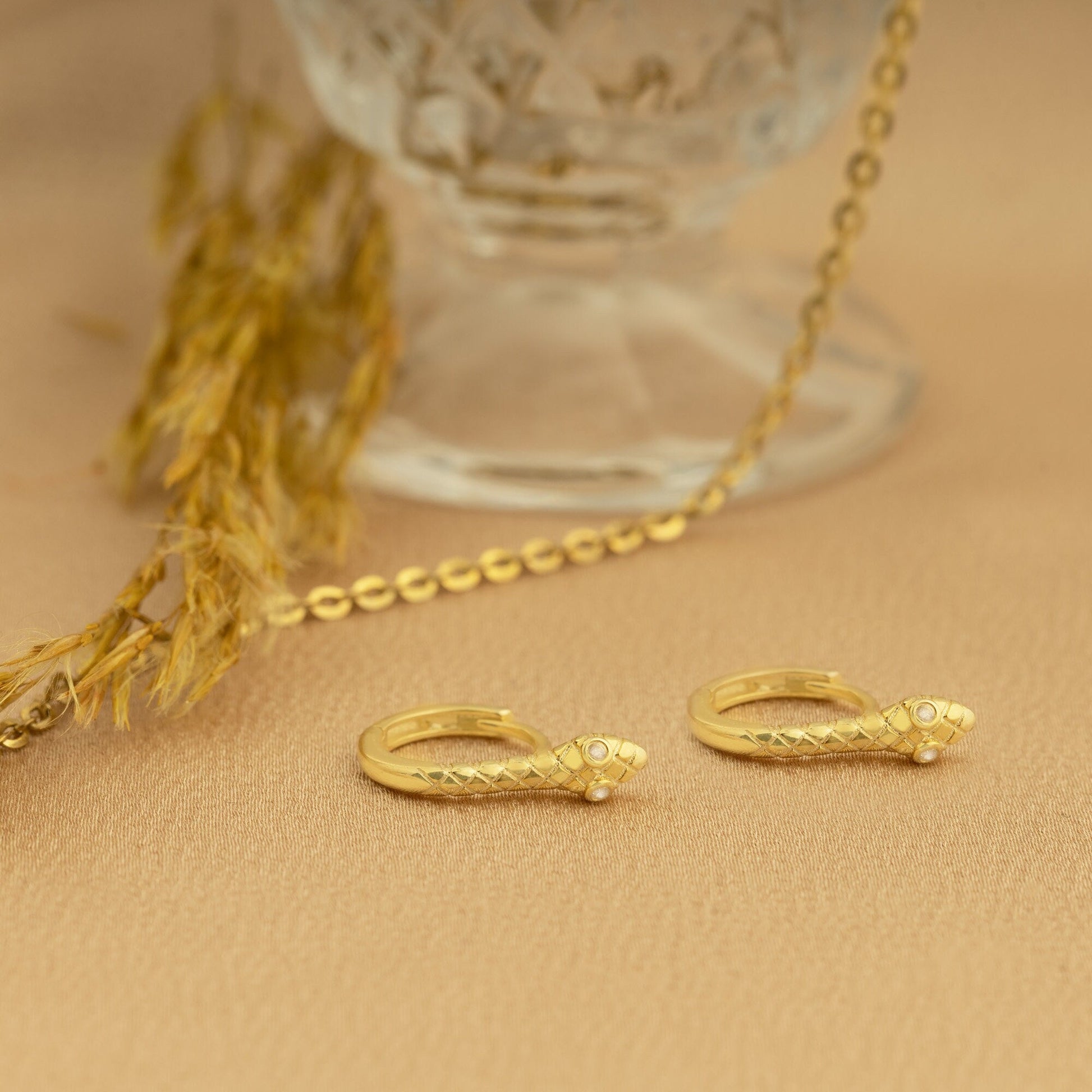 Snake Hoop Earrings - Mother's Day Gift - Snake With Diamond Earrings - Huggies With Diamond - Dainty Snake Huggie - Gift for Her - Gift For Him