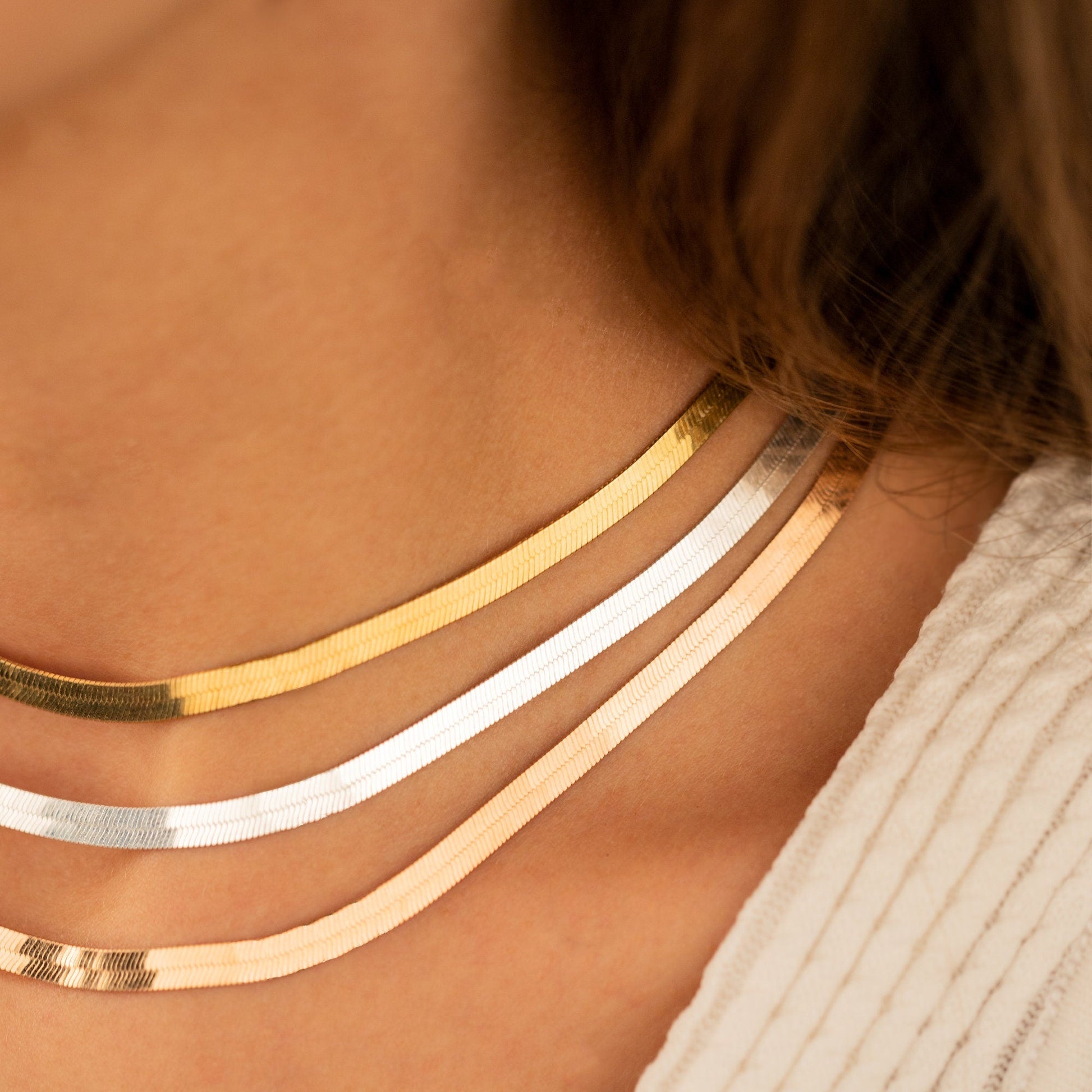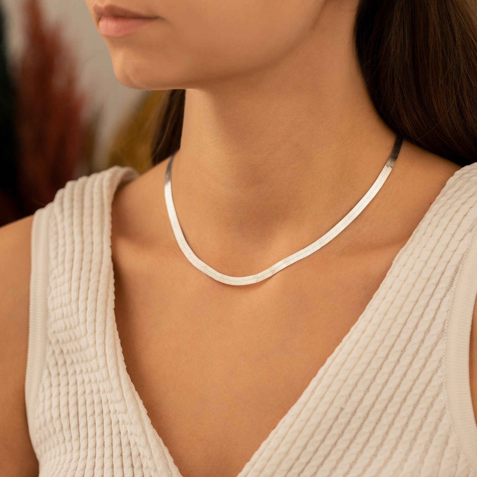 925 Sterling Silver Snake Layered Herringbone Chain Necklace