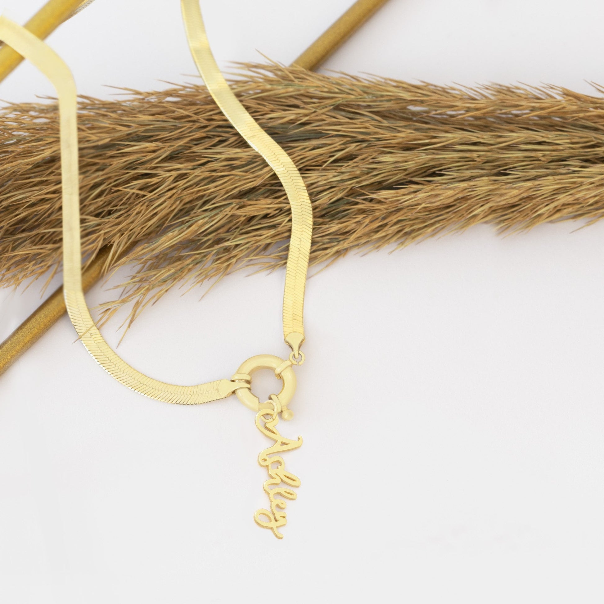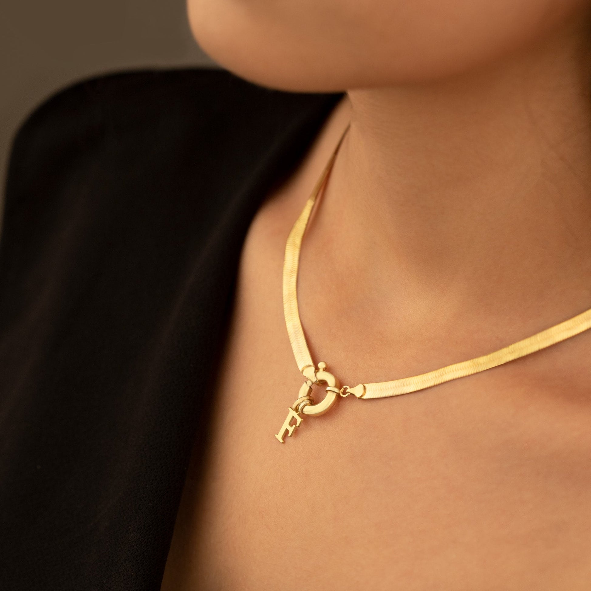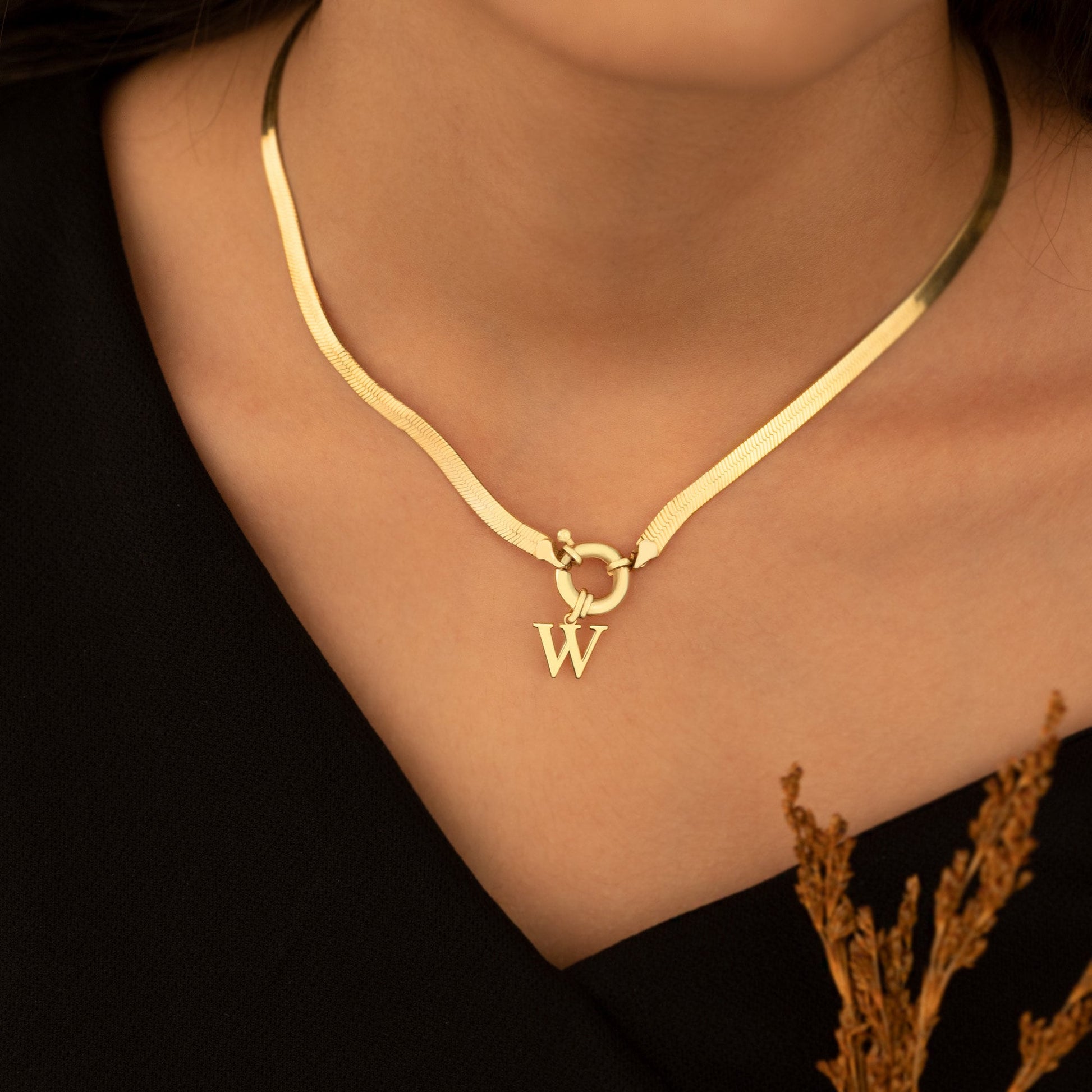 Snake Layered Chain With Initial - Herringbone Chain With Name - Italian Reversible Chain - Snake Chain Choker - Sailor Lock Necklace - Gift for Her - Gift for Mother