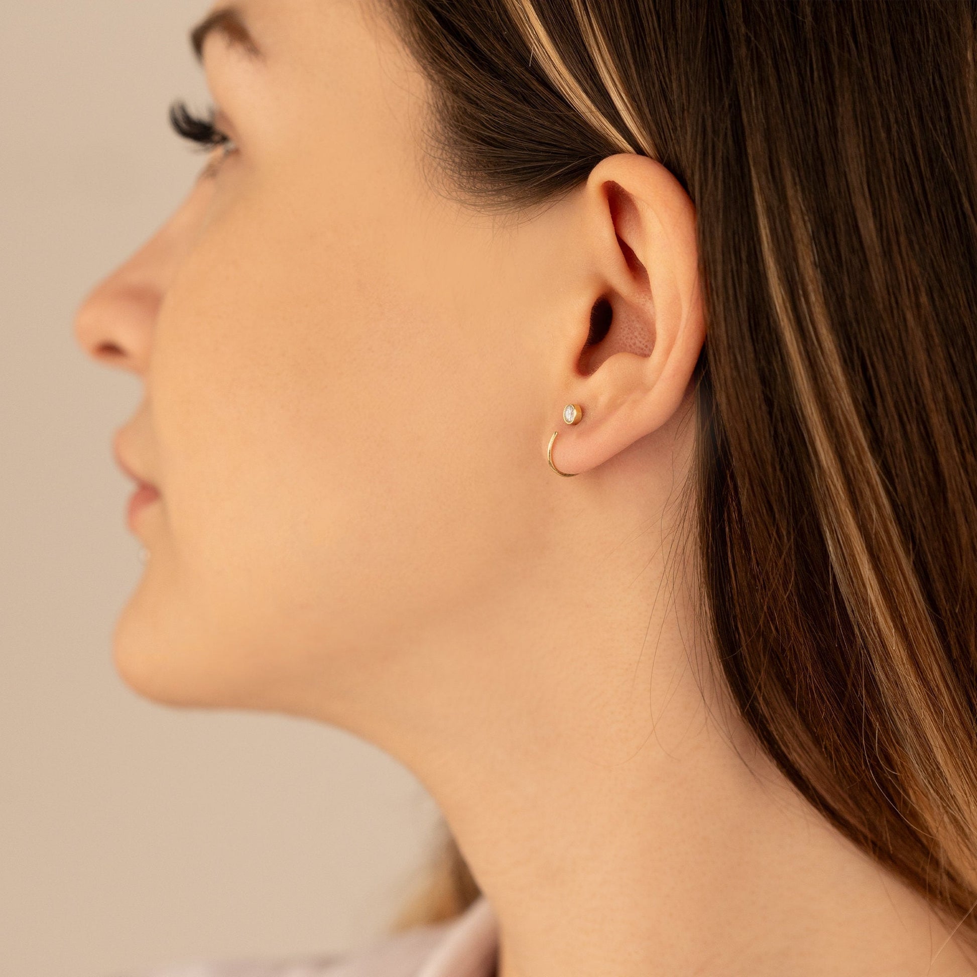 925 Sterling Silver Solitaire Diamond C Hoop Earrings