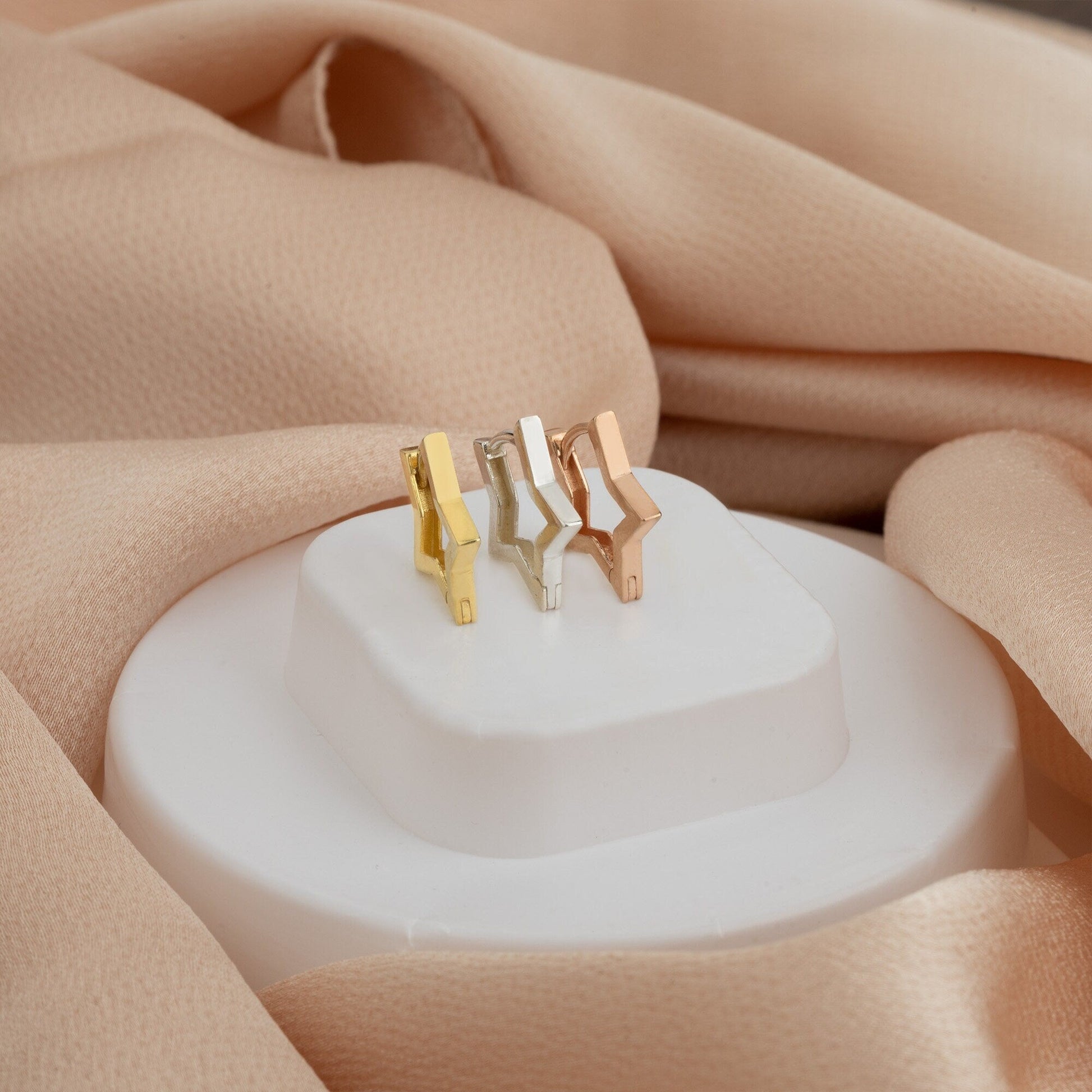 Star Hoop Earrings - Huggie Hoop Star Earring - Daily Use Earrings - Gold Hoop Earring - Gift For Mother - Gift for Her