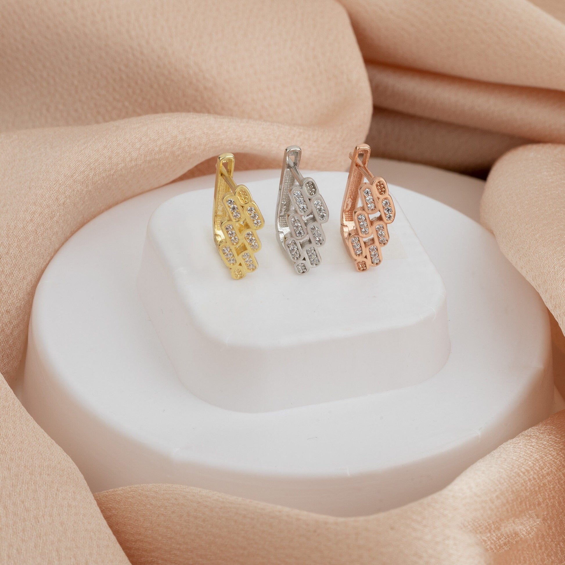 925 Sterling Silver Stripe Little Diamonds Earrings
