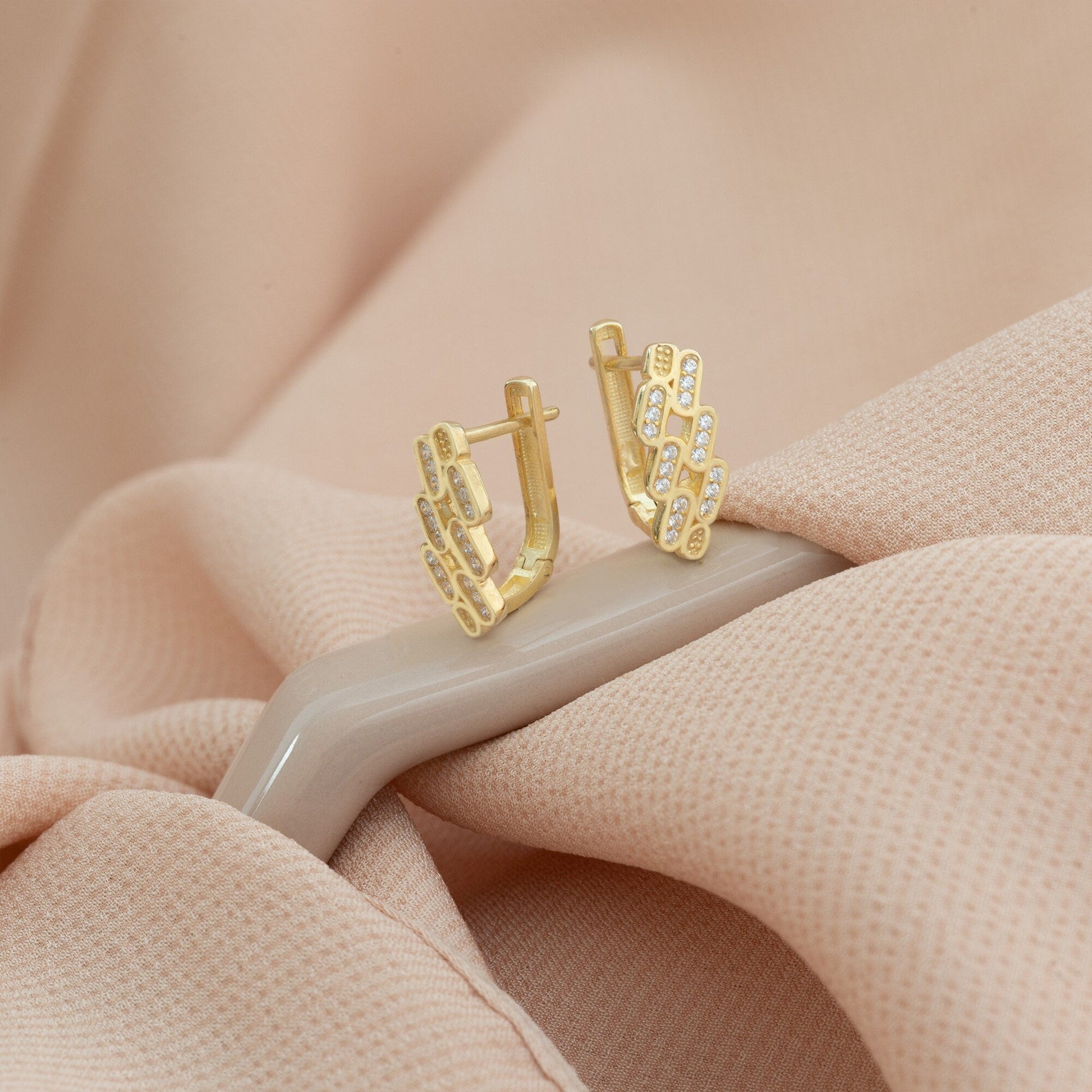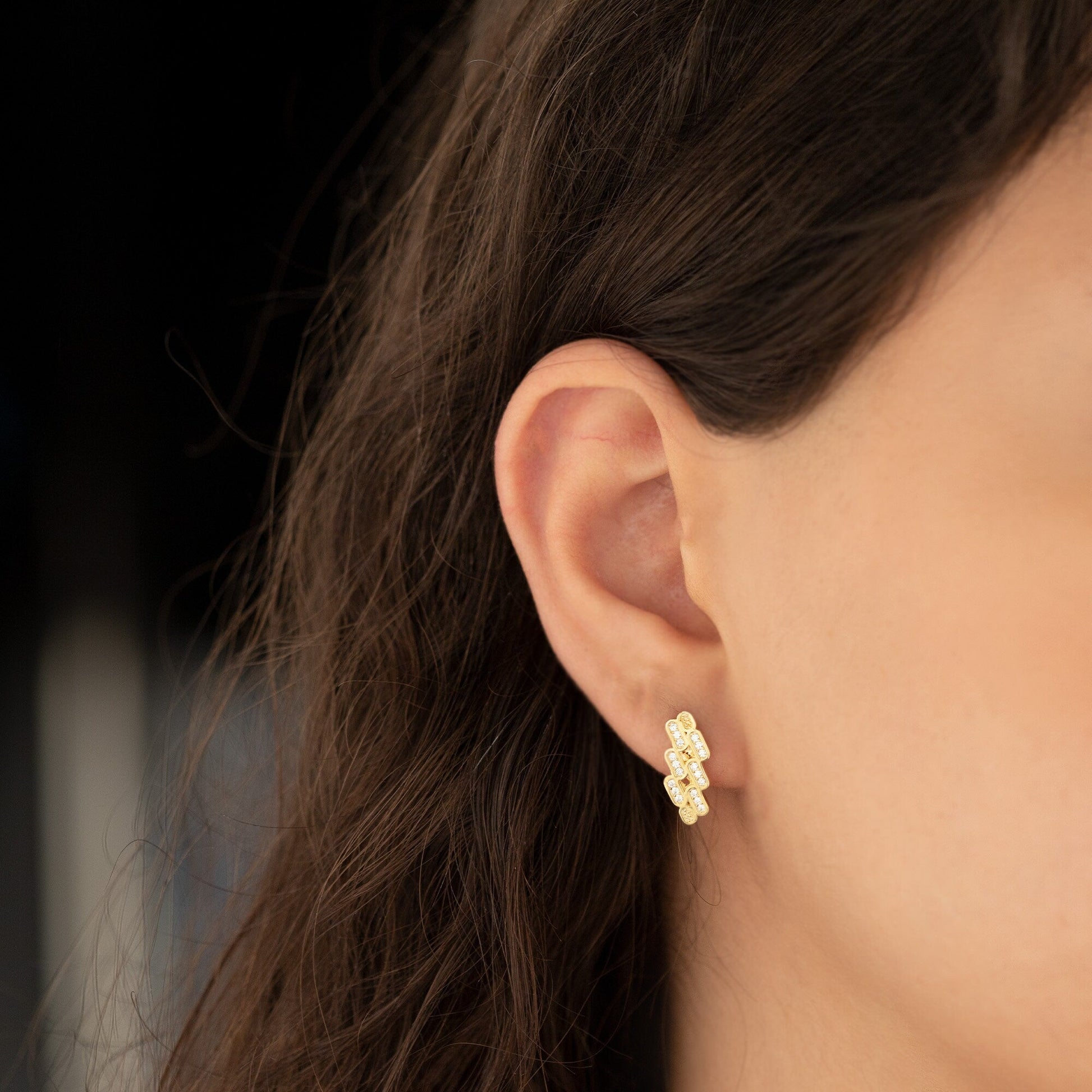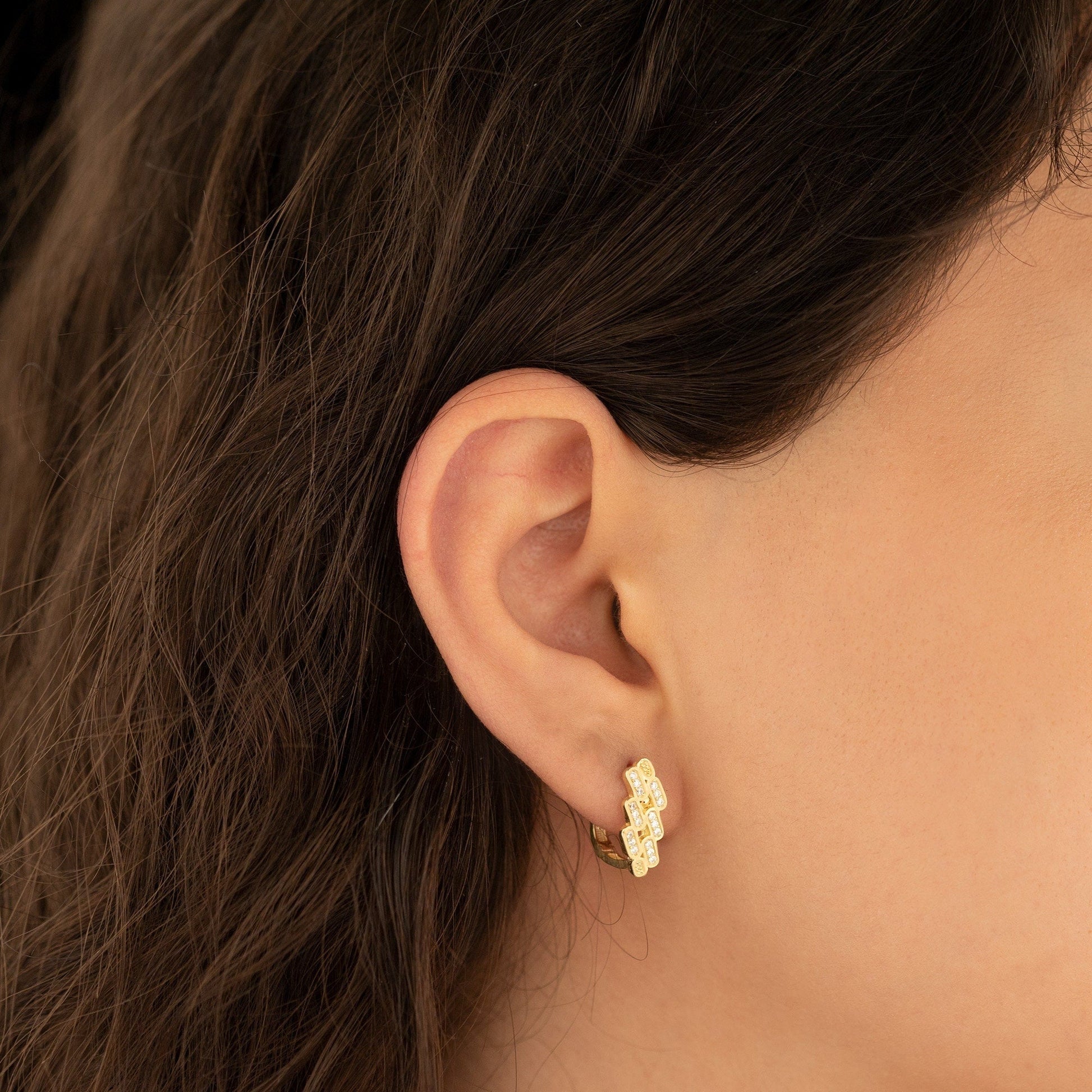 Stripe Little Diamonds Earrings - Mother's Day Gift - Small Stripe with Diamonds - Dainty Earrings - Hoop Earrings - Gift for Her