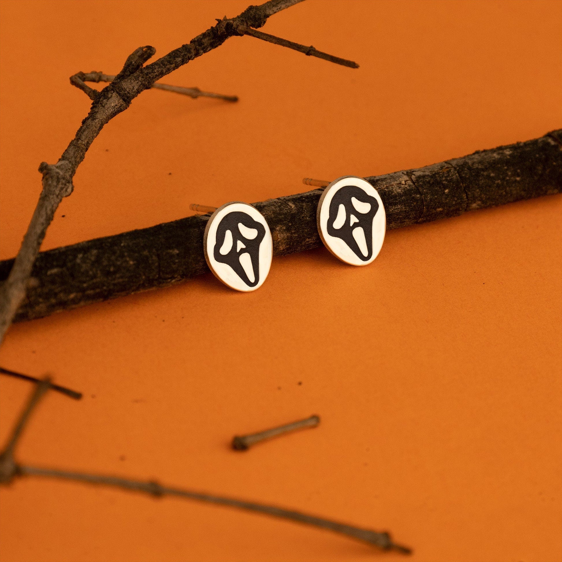 925 Sterling Silver Terrifying Ghost Face Earrings - Halloween Jewelry