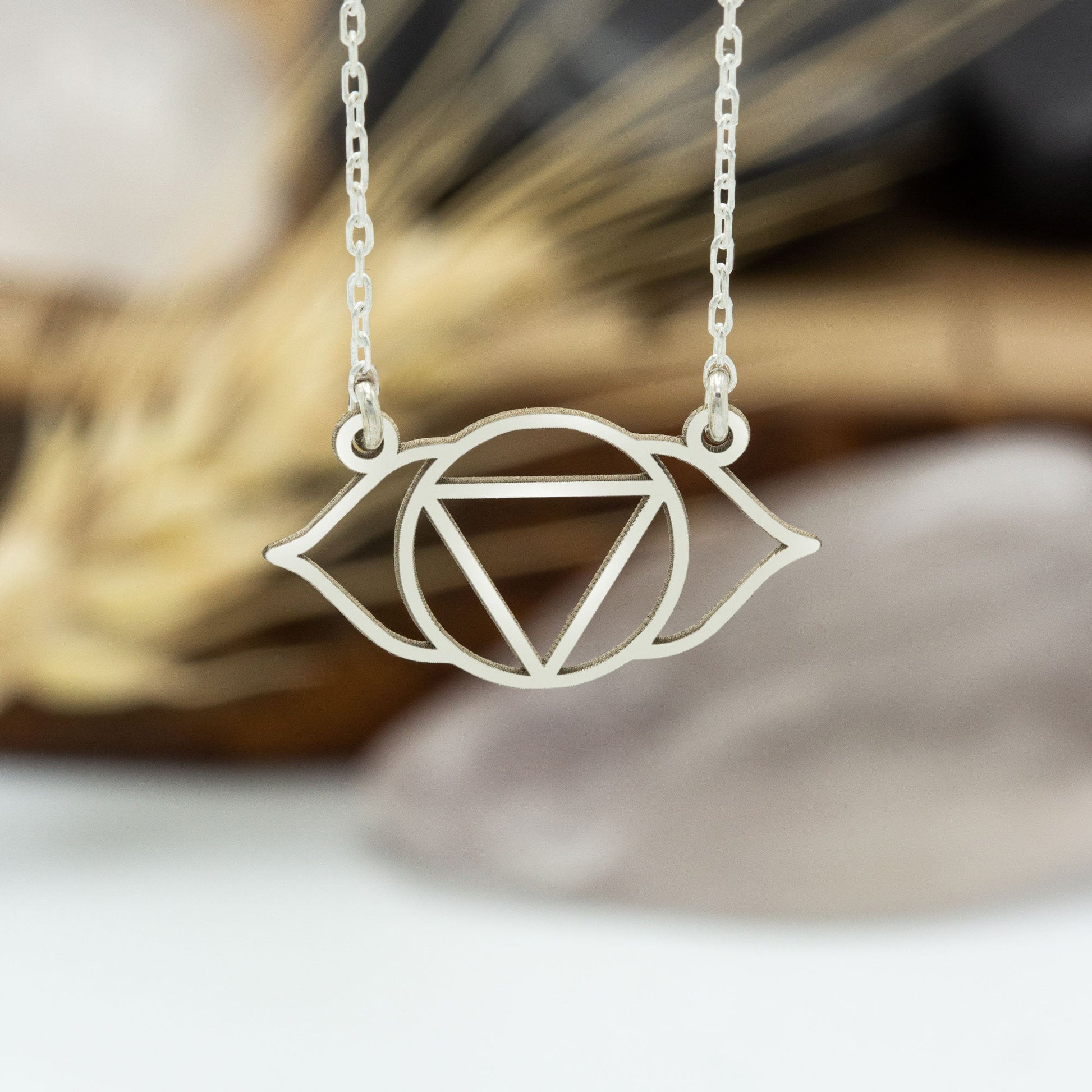Third Eye Chakra Necklace - Silver Ajna Symbol Necklace - Yoga Jewelry - Chakra Jewelry - Meditation Chakra Symbol Necklace - Summer Jewelry