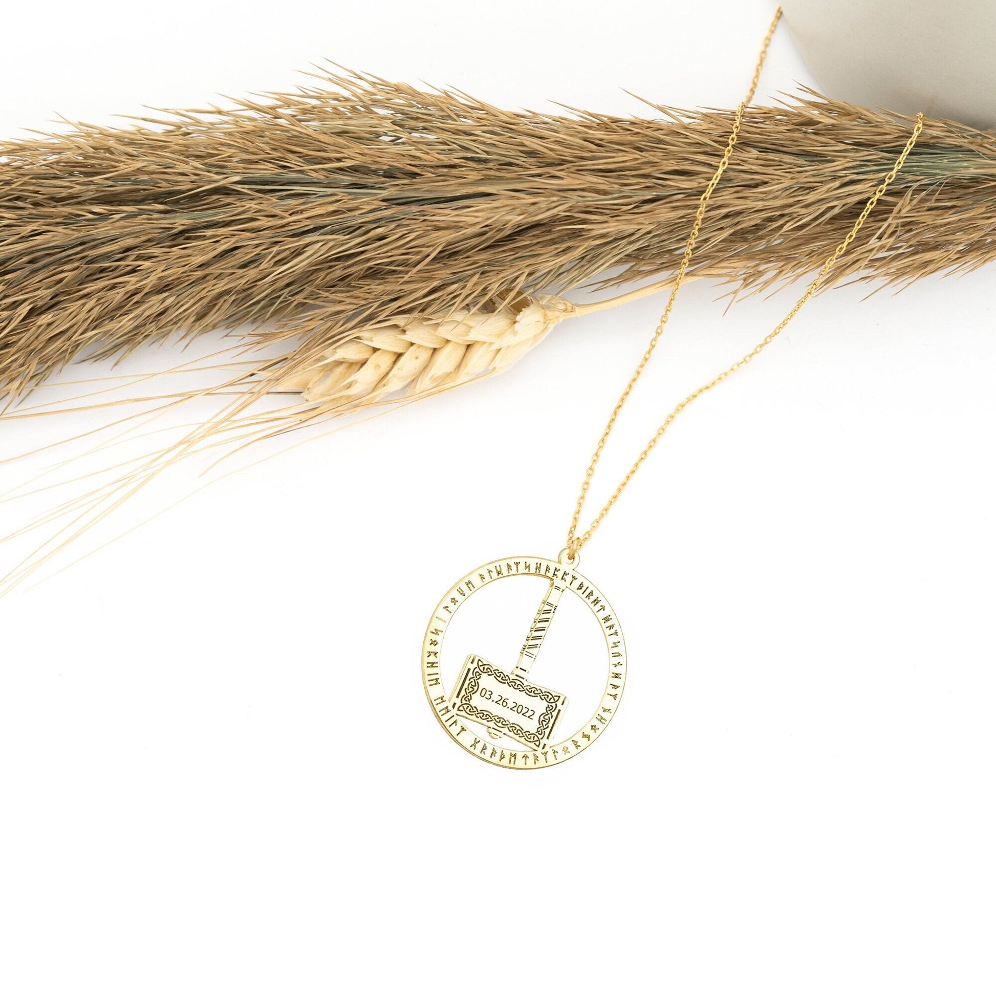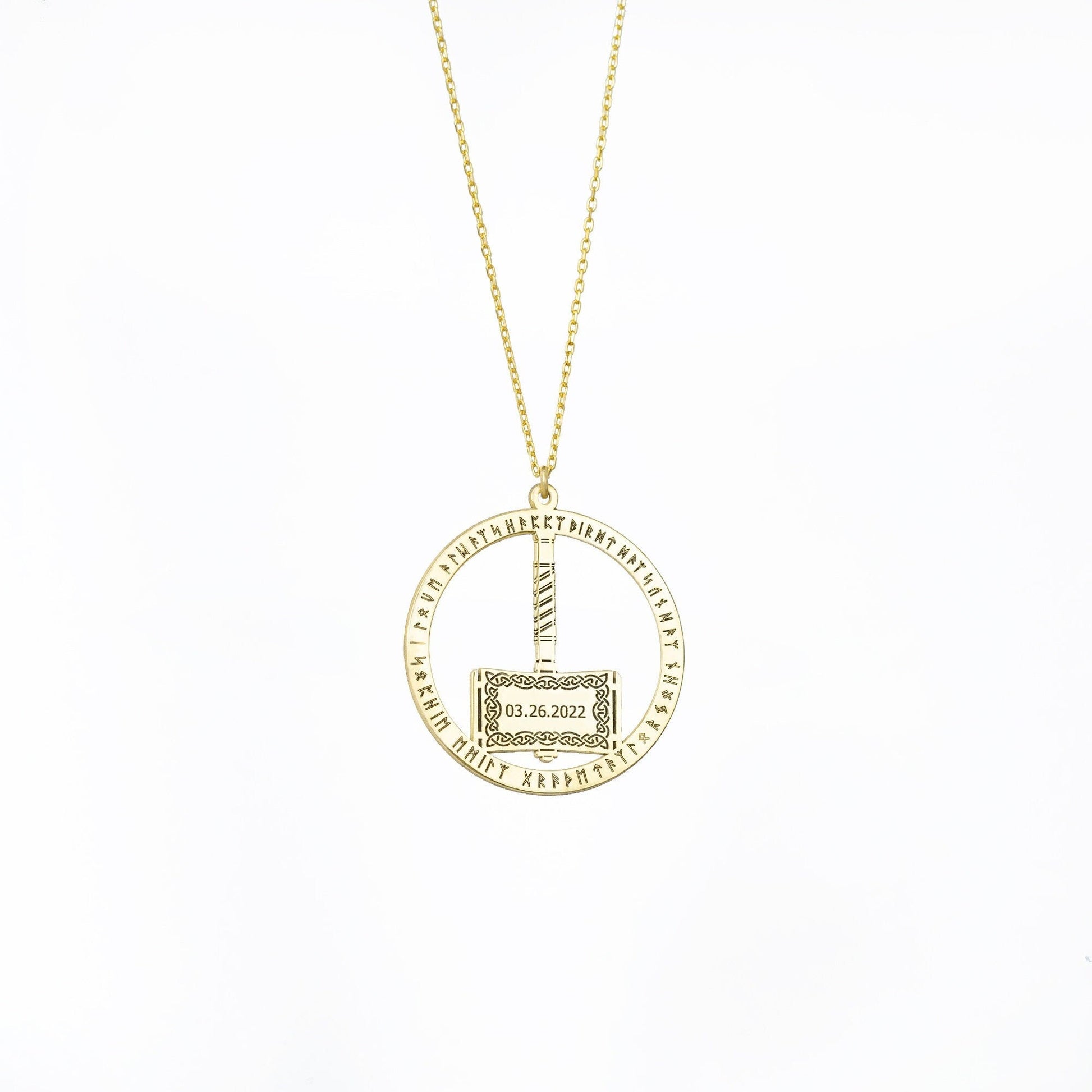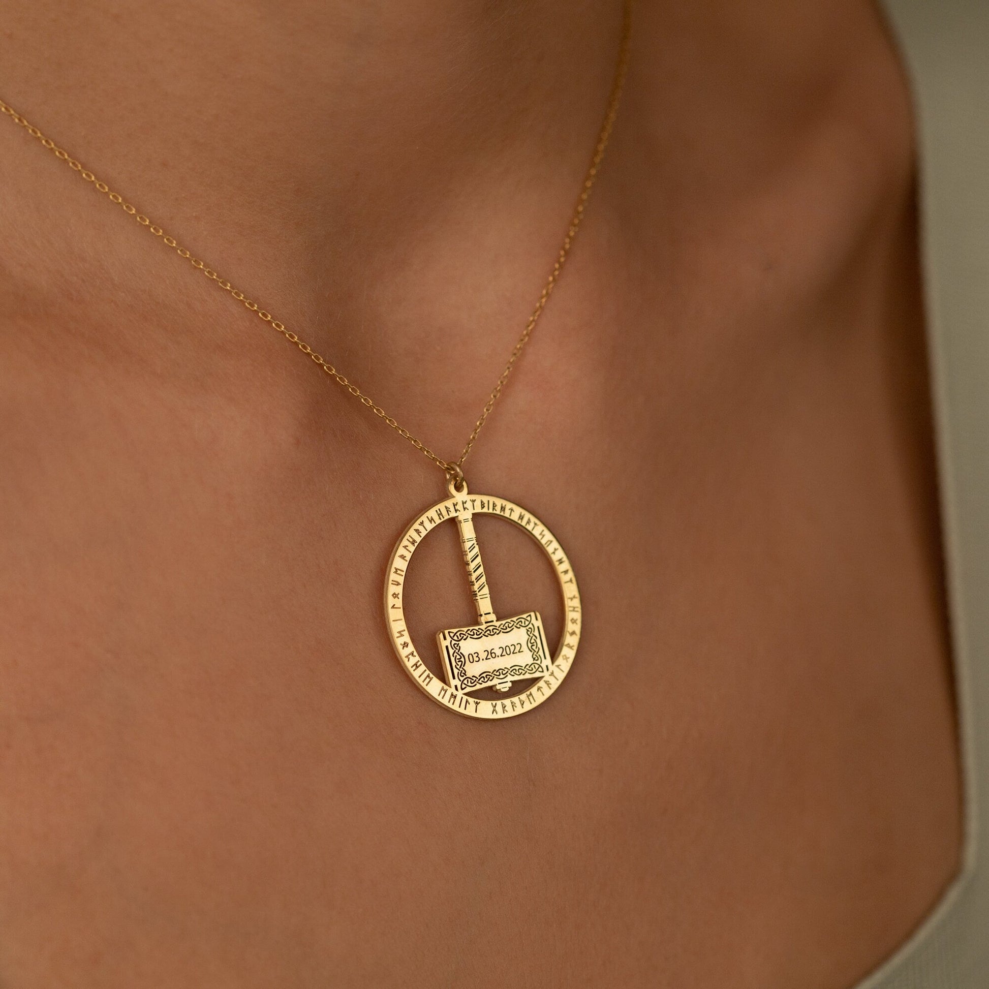 Custom Thor Viking Hammer Norse pendant - Silver Name Nordic Rune Charm - Thor's Hammer Pendant - Custom Viking Alphabet Necklace - Custom Date Vegvisir Necklace - Vegvisir Necklace