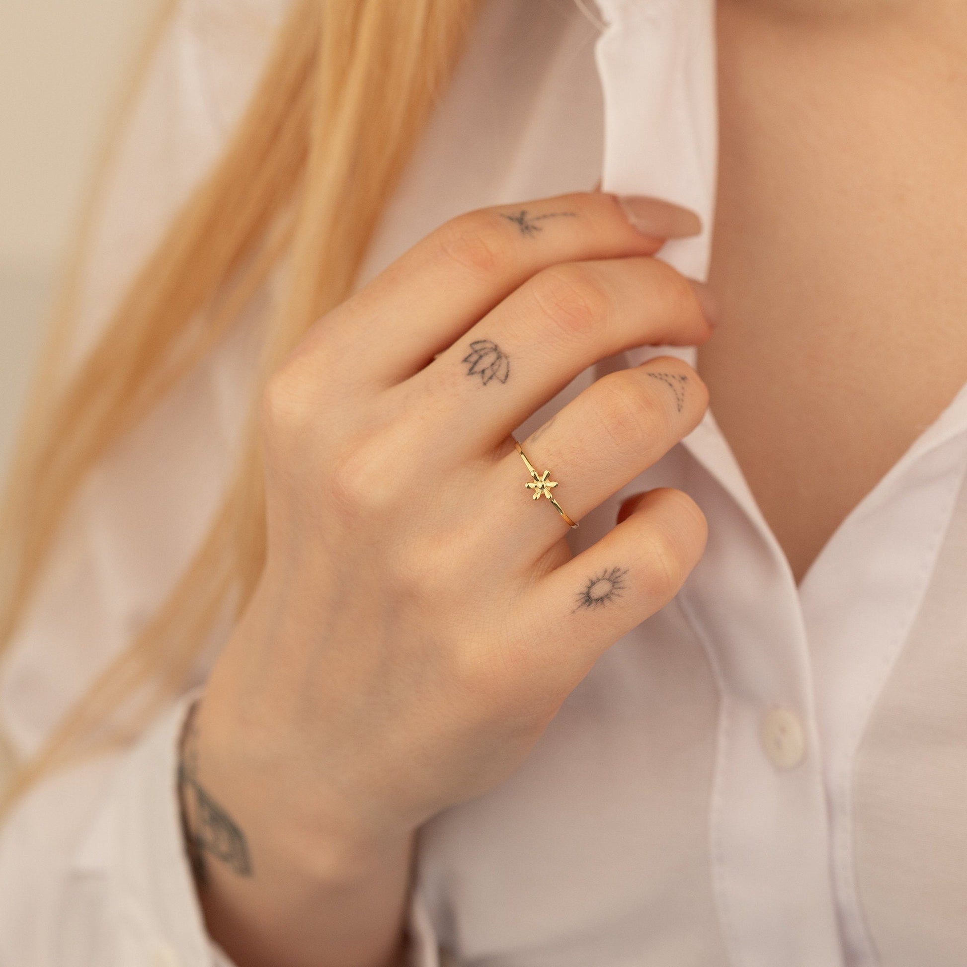 This exquisite 925 Sterling Silver Tiny Daisy Ring is the perfect gift for your loved one, whether it's for a special occasion or just to show your love. Its delicate design and minimalist flower shape make it a timeless and elegant piece of jewelry that will be treasured for years to come. Give the gift of beauty and love with this stunning daisy ring.