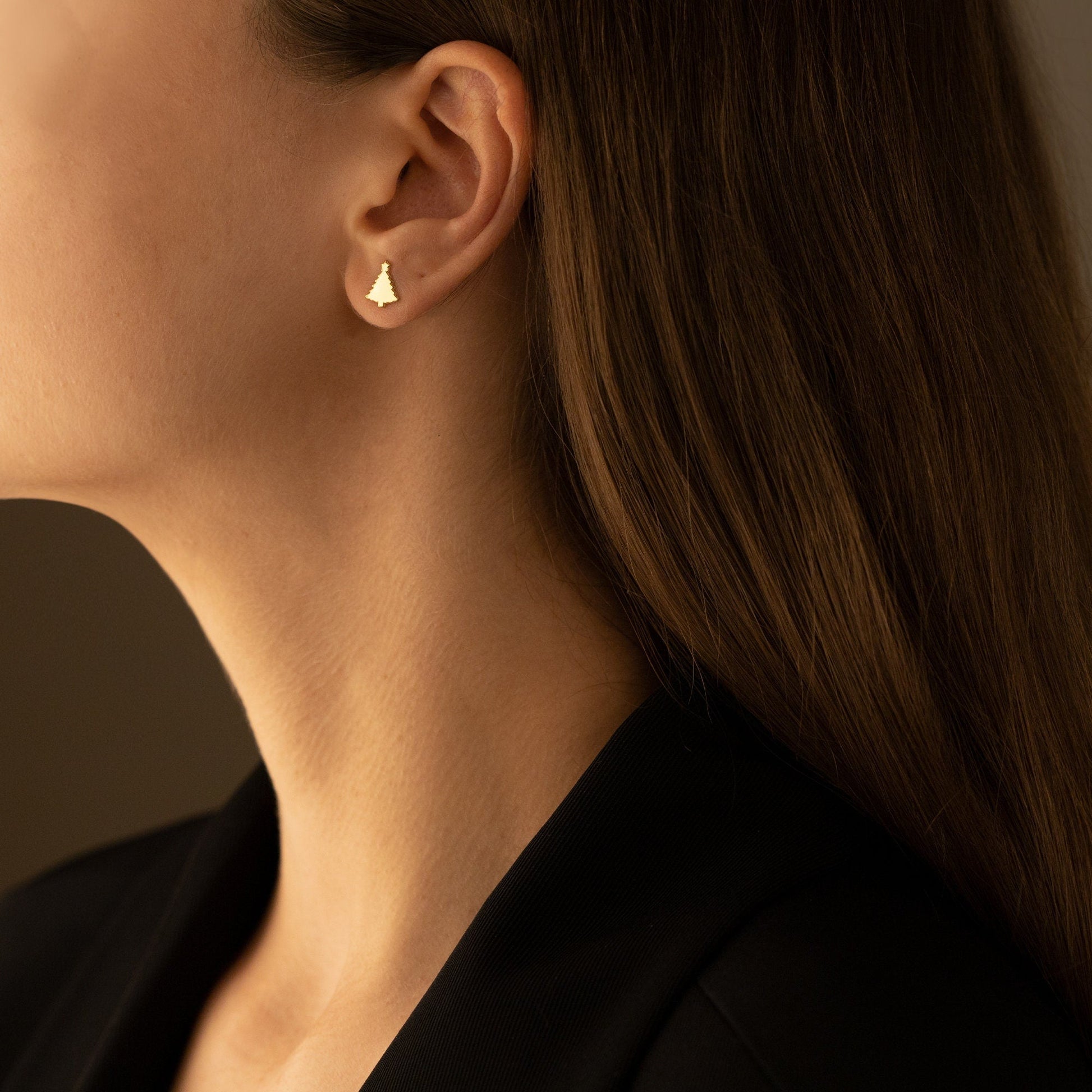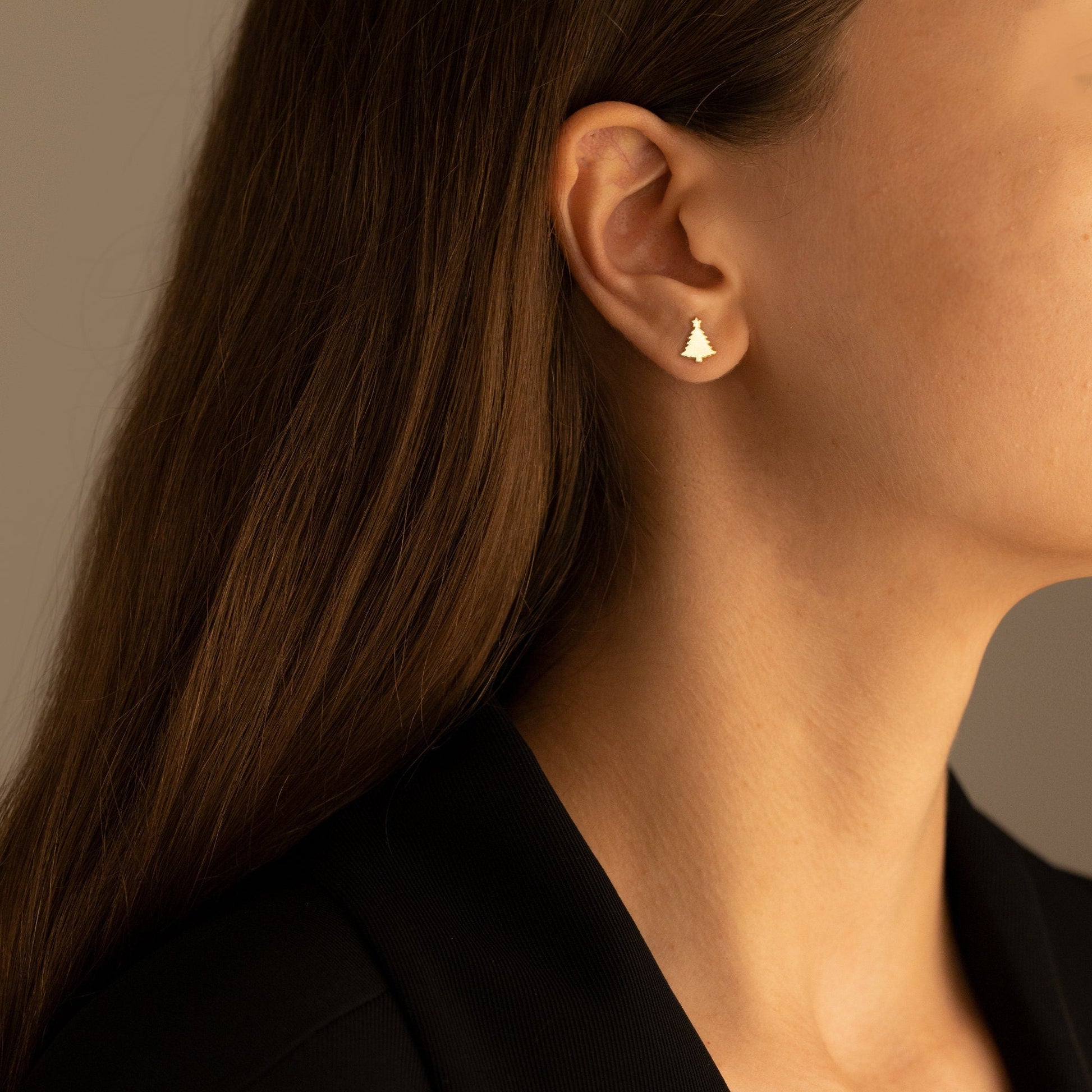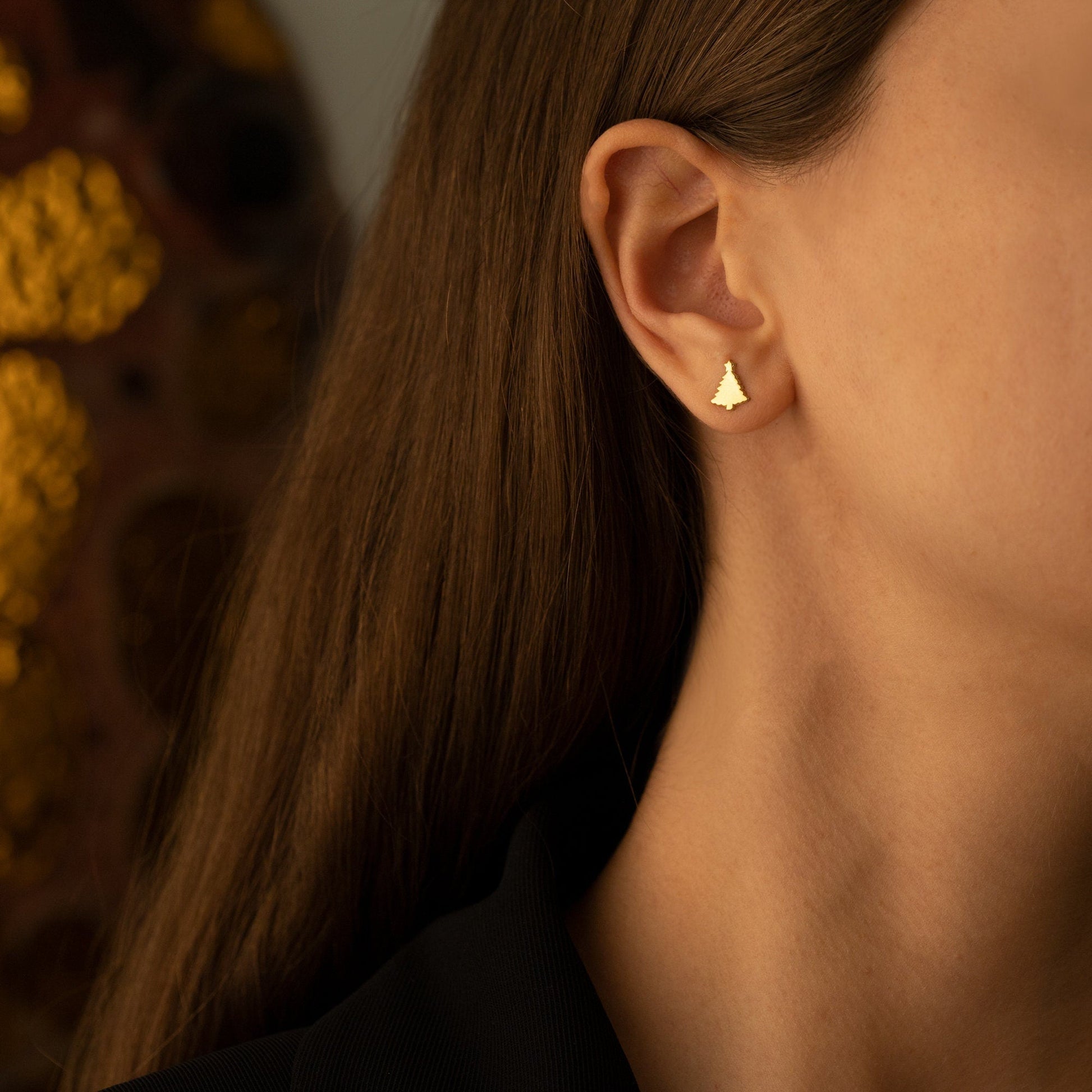 Tiny Peace Christmas Tree Earrings - Noel Stud Earrings - Second Hole Earrings - Christmas Gift - Minimalist Earrings - Small Stud Earrings - Gift for Her - Birthday Gift