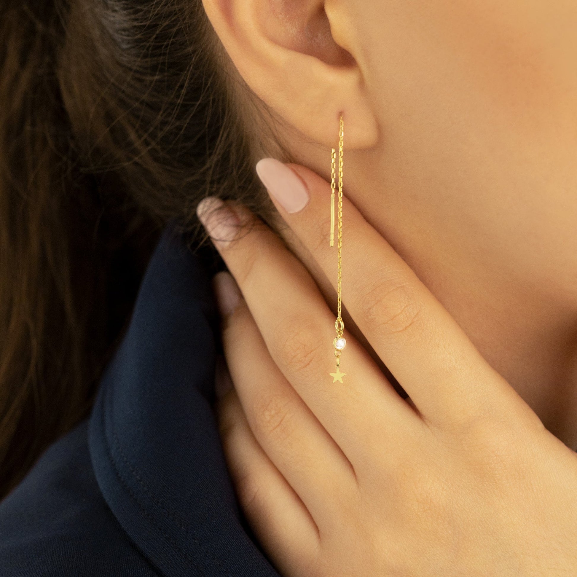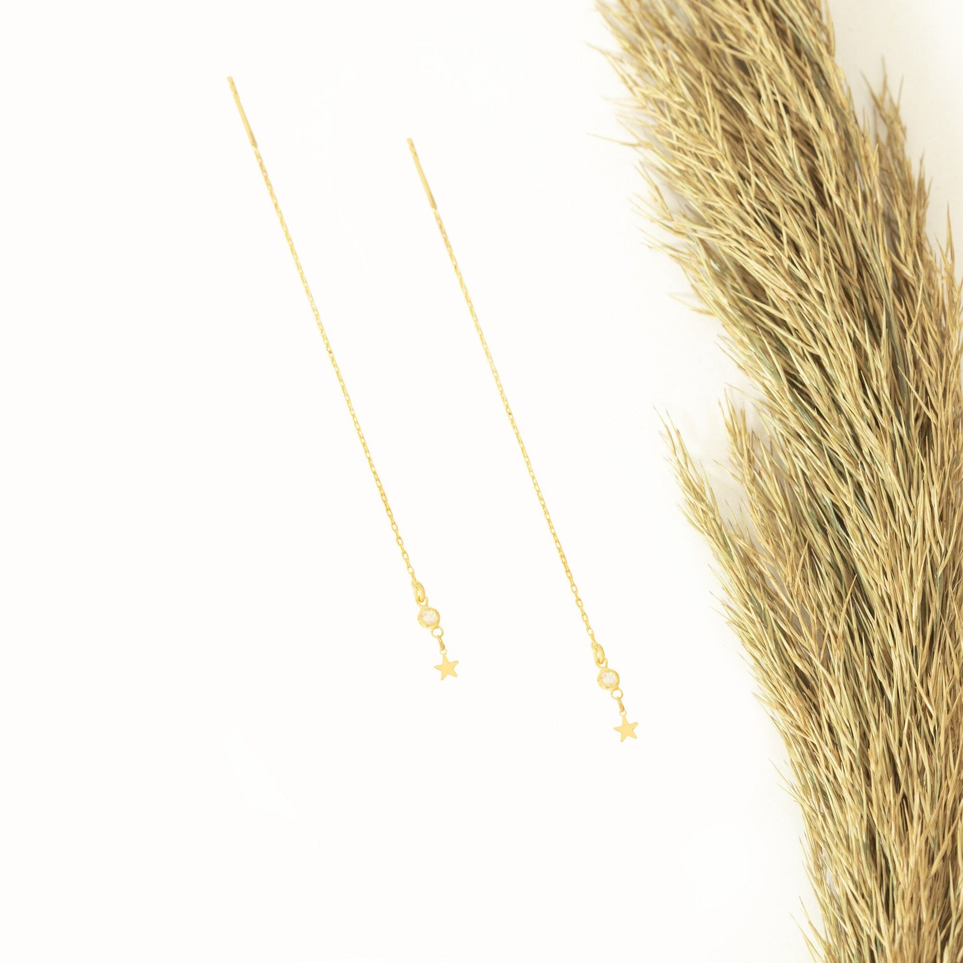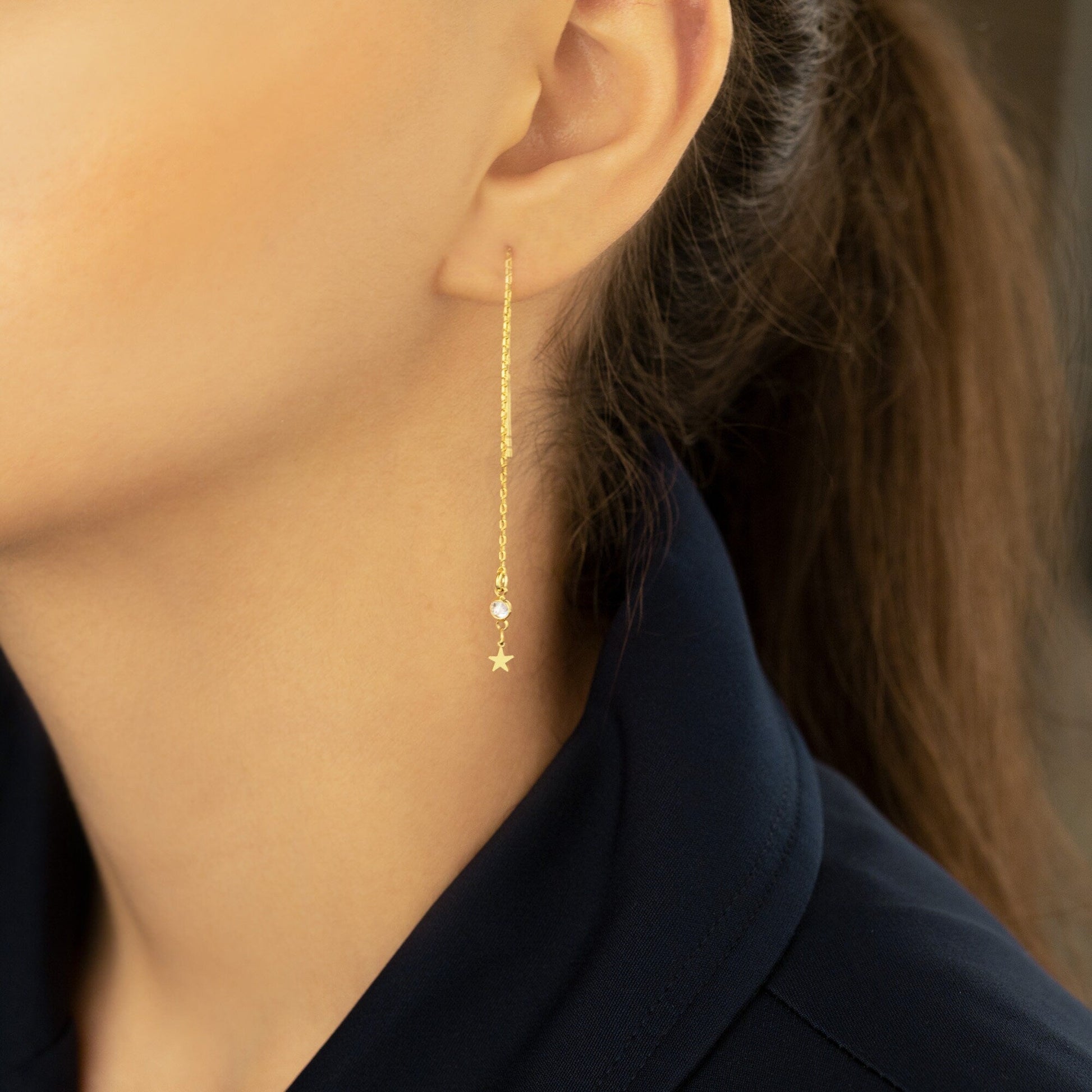 Tiny Star Diamond Threader Earrings - Tiny Star Drop Earrings - Diamond Threader Earring - Modern Jewelry - Celestial Earring - Gift for Her - Chain Dangle Earring