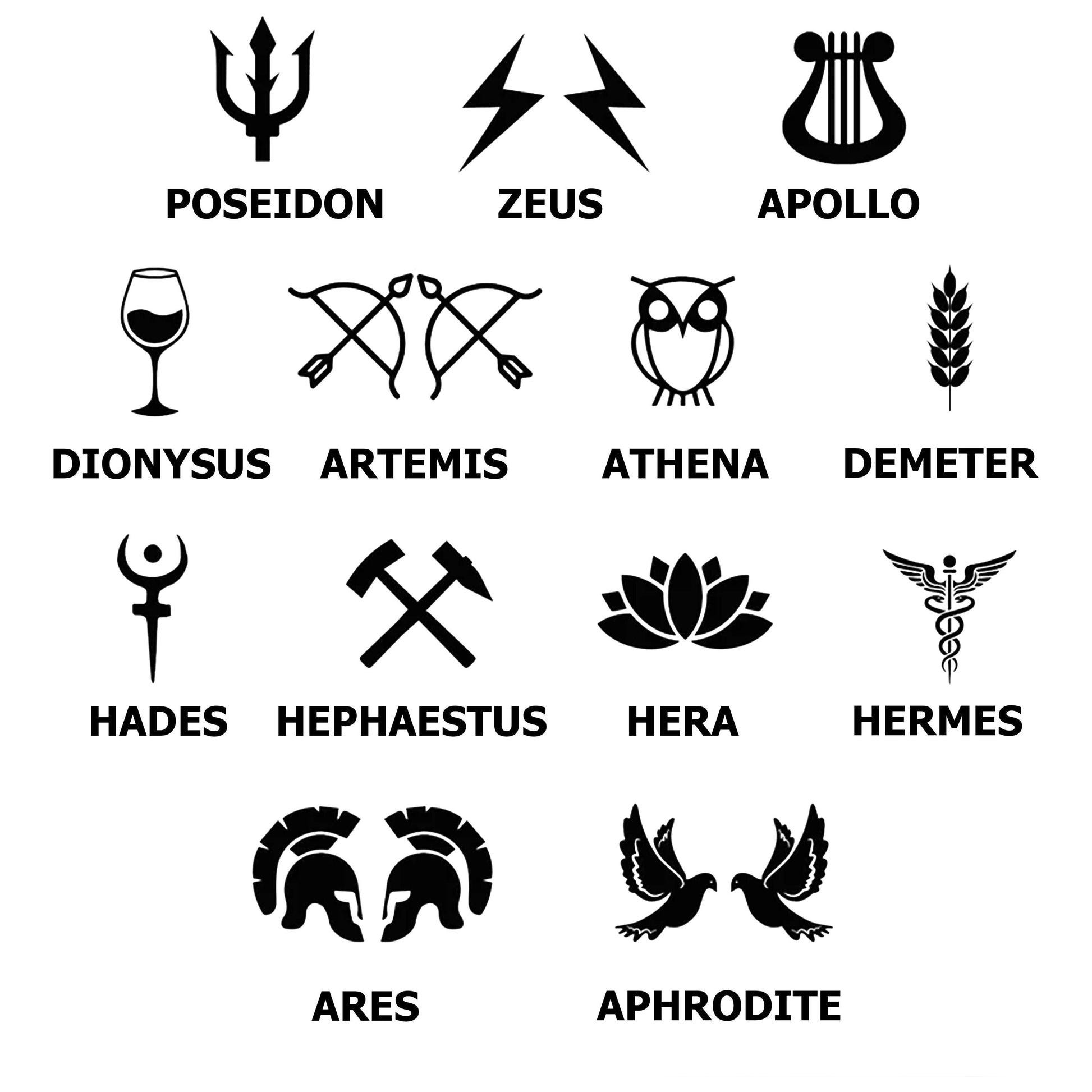1) Zeus: King of the gods, ruler of Mount Olympus, and god of the sky, weather, thunder, law, order, and justice.
