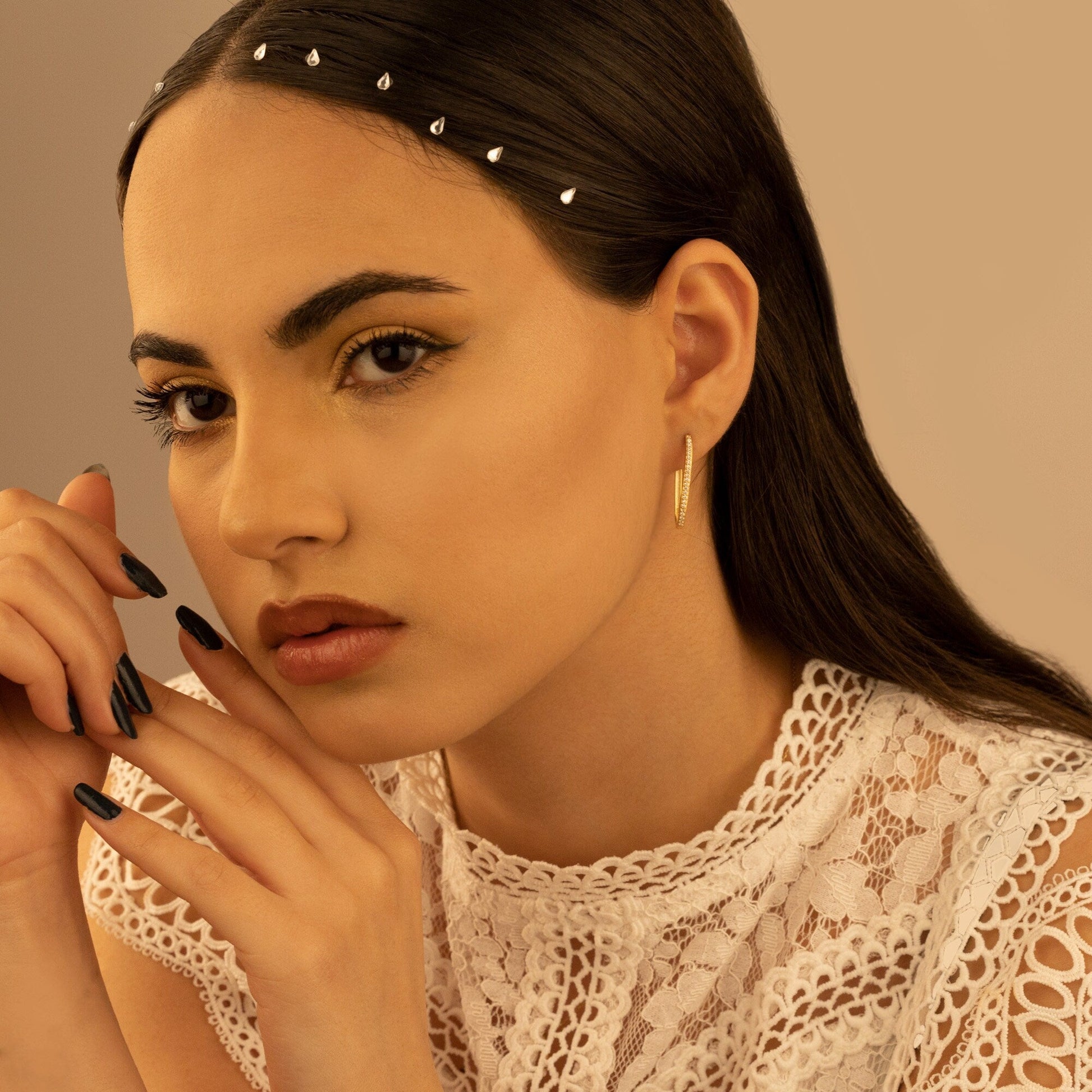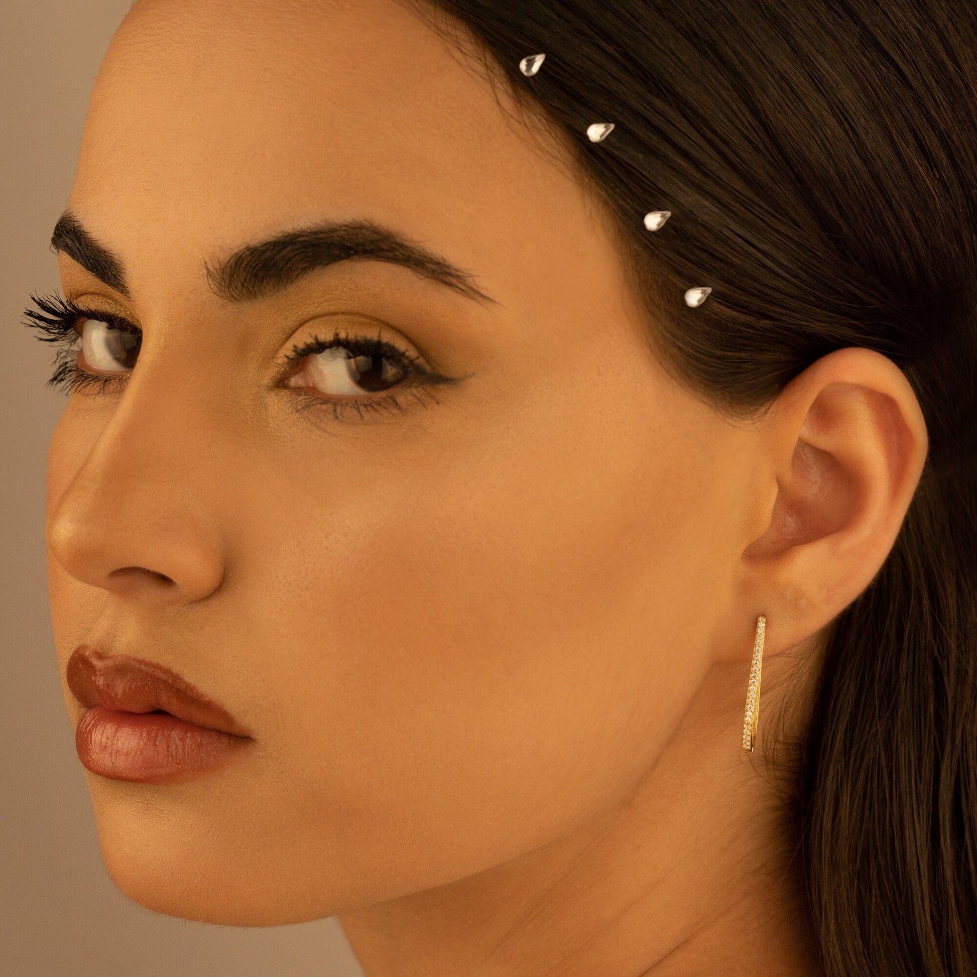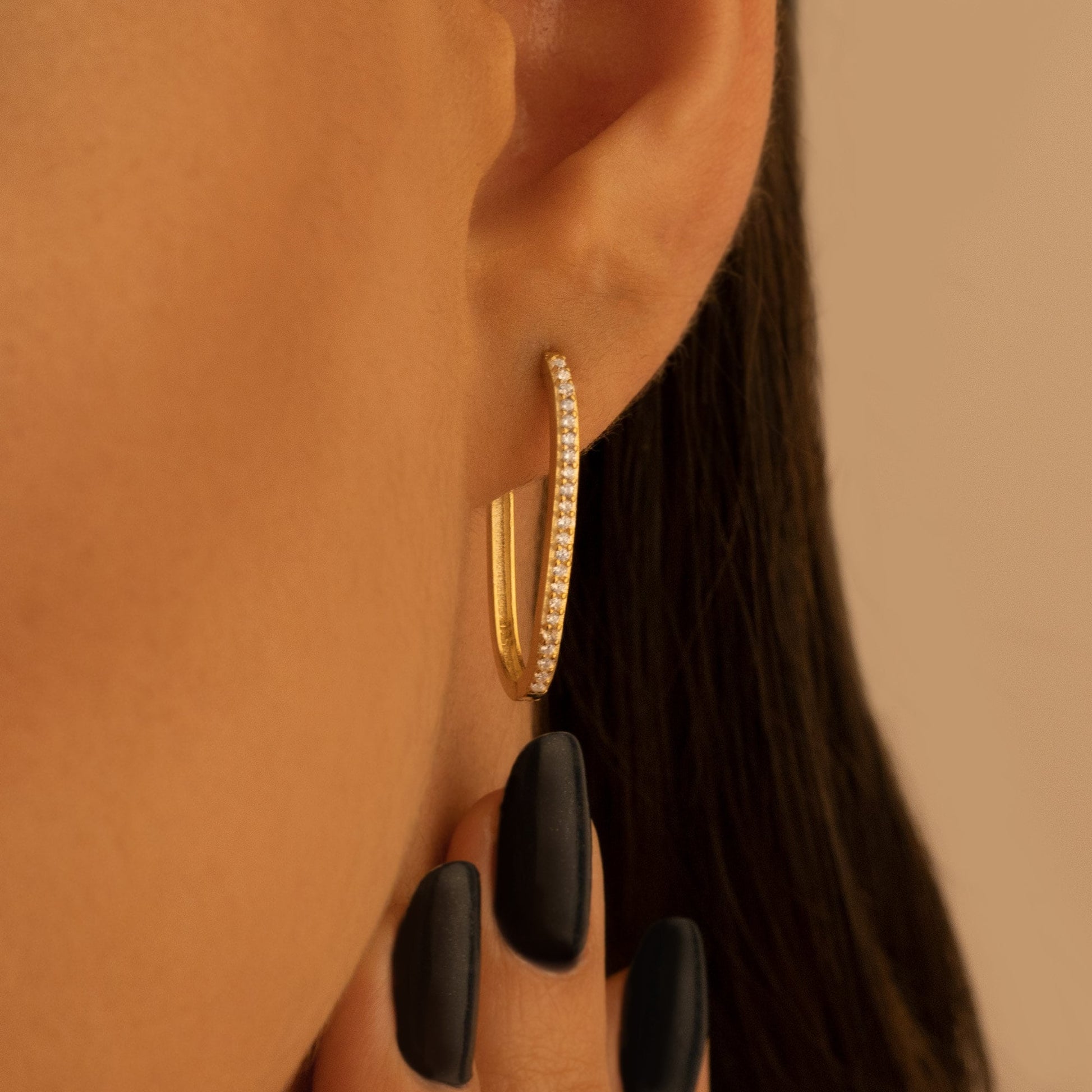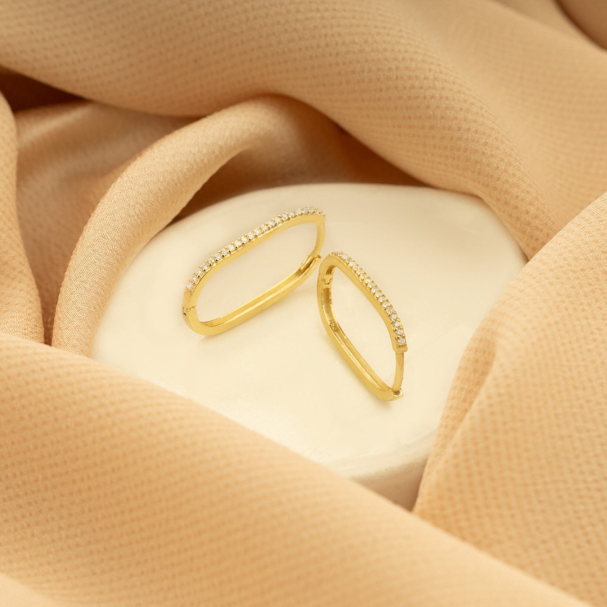 Unique Diamond Earrings - Mother's Day Gift - Rectangular Diamond Earrings - Huggies With Diamond - Dainty Earrings - Gift for Her - Gift For Him