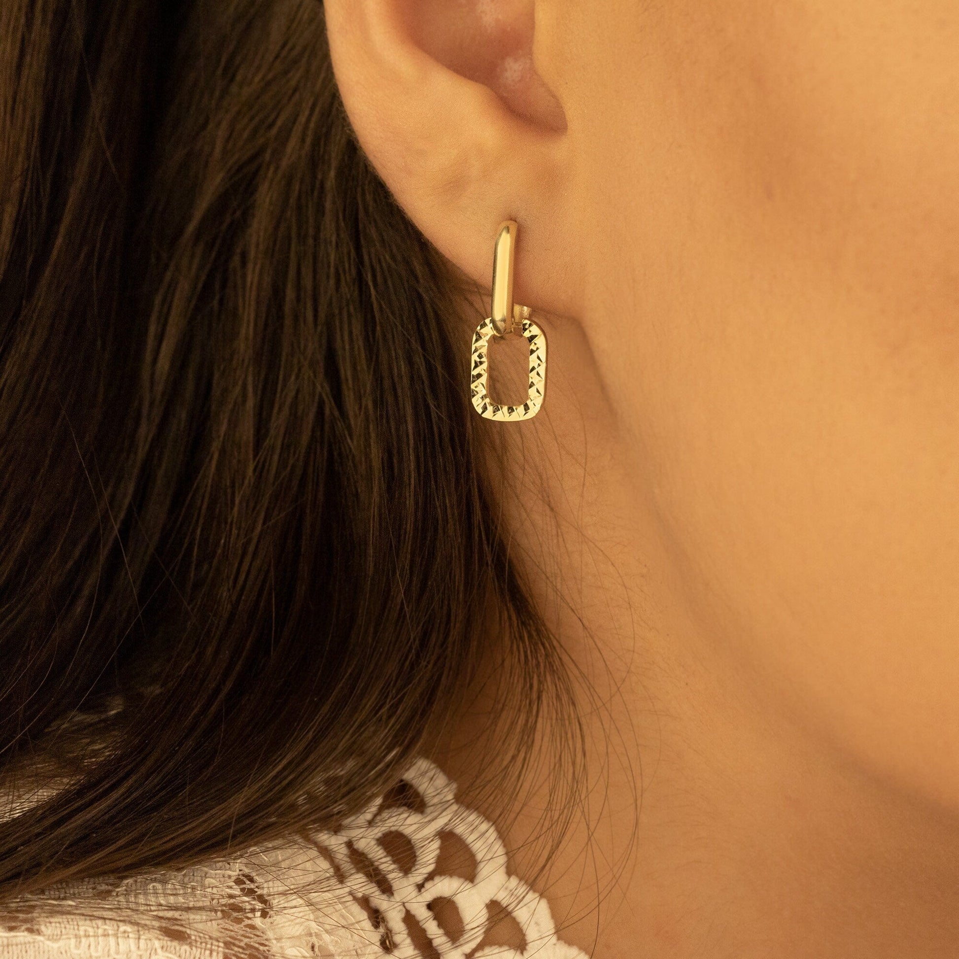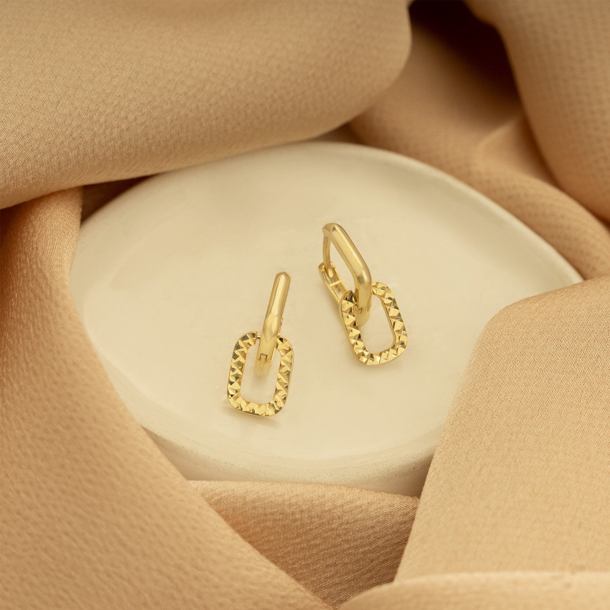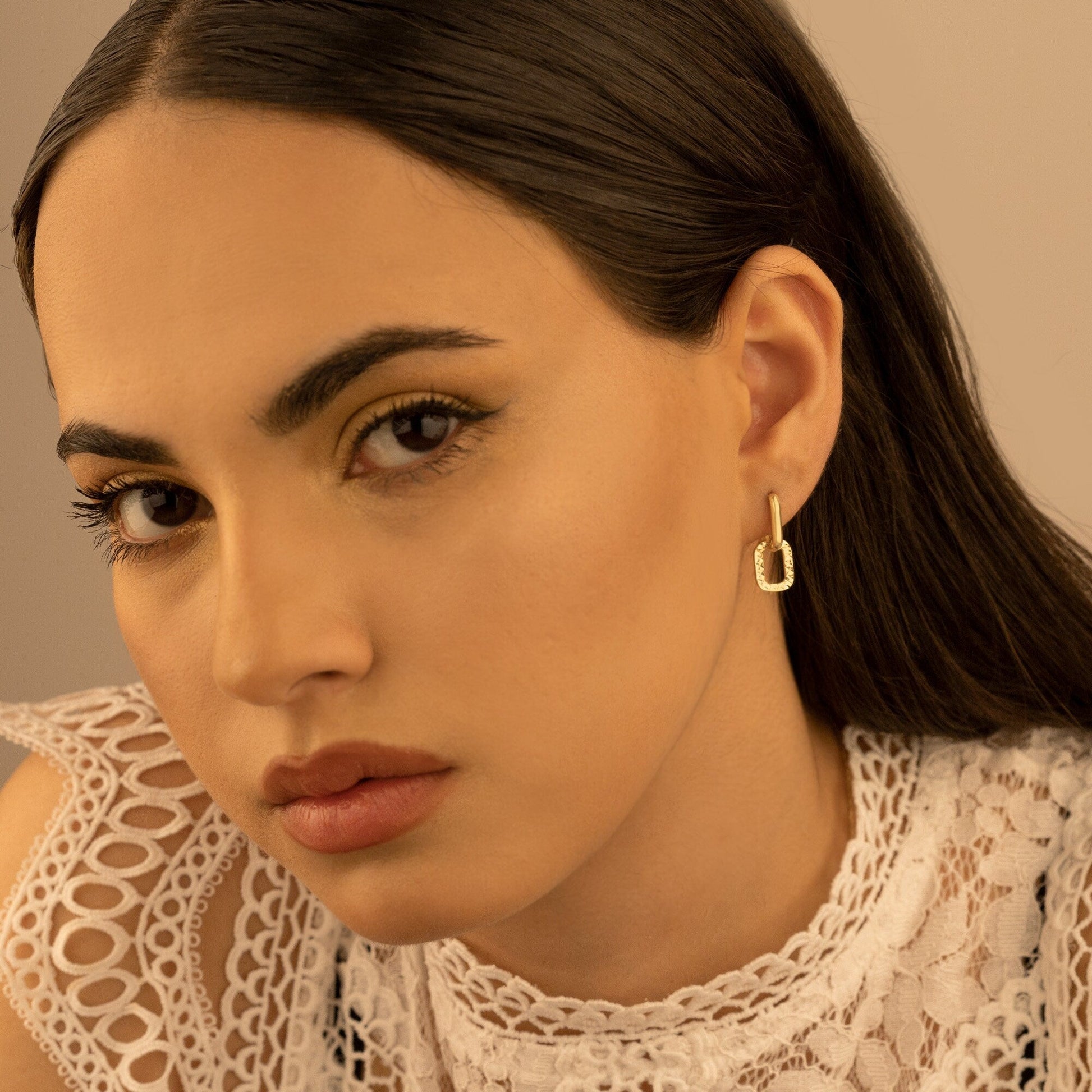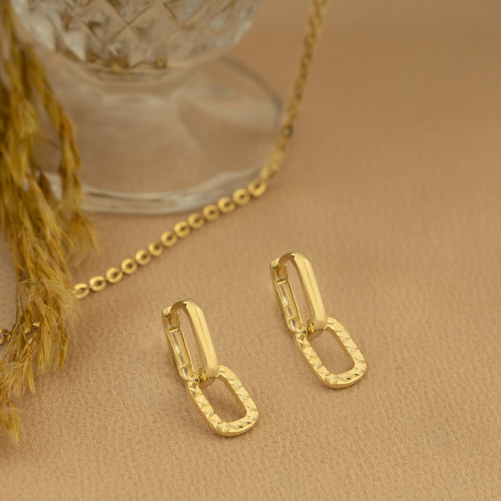Unique Double Hoop Earrings - Double Square Earring - Geometric Earrings - Huggie Earring - Serrated Dainty Earrings - Gift for Her - Modern Jewelry - Birthday Gift