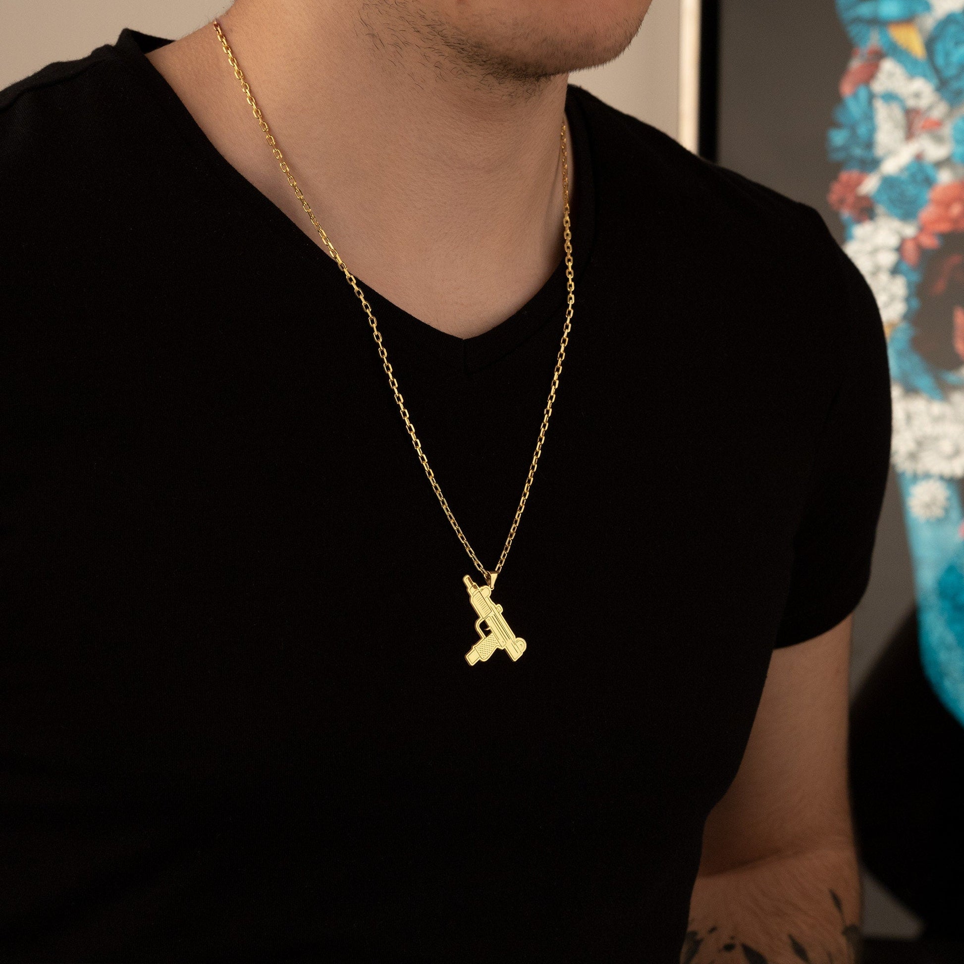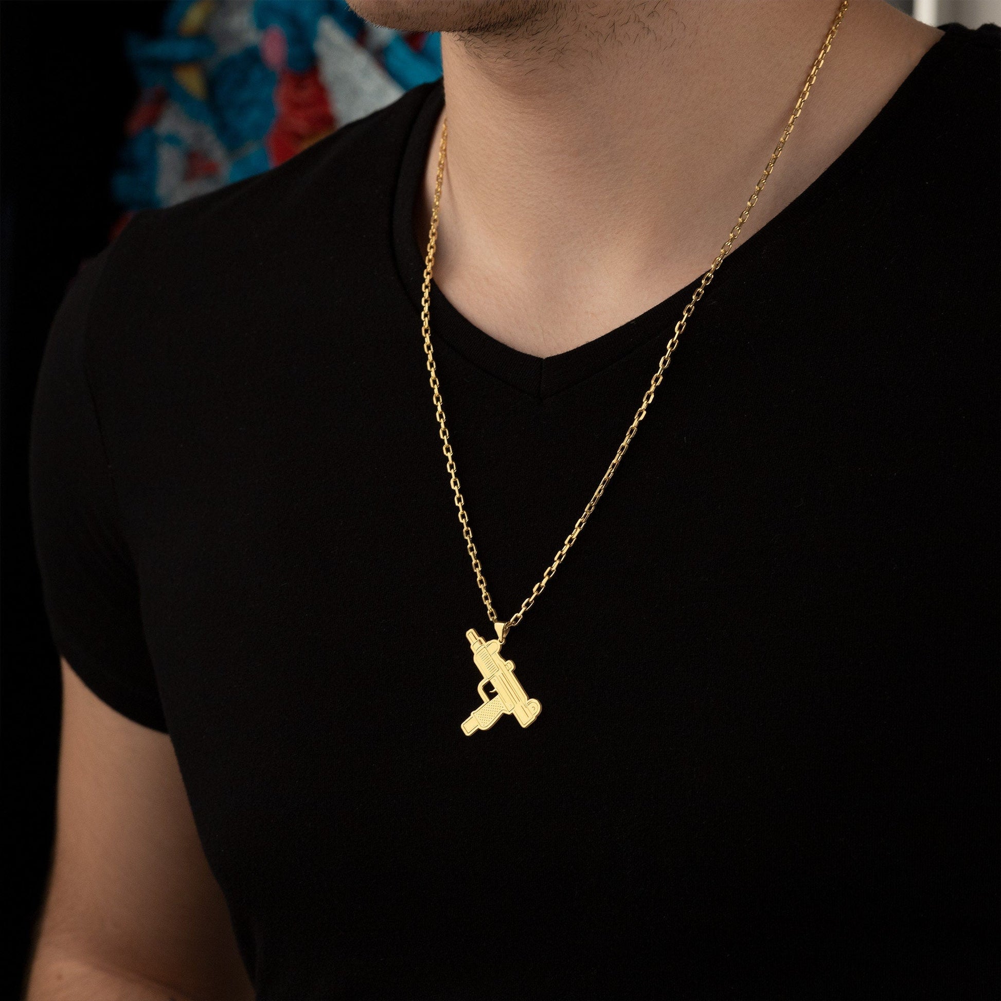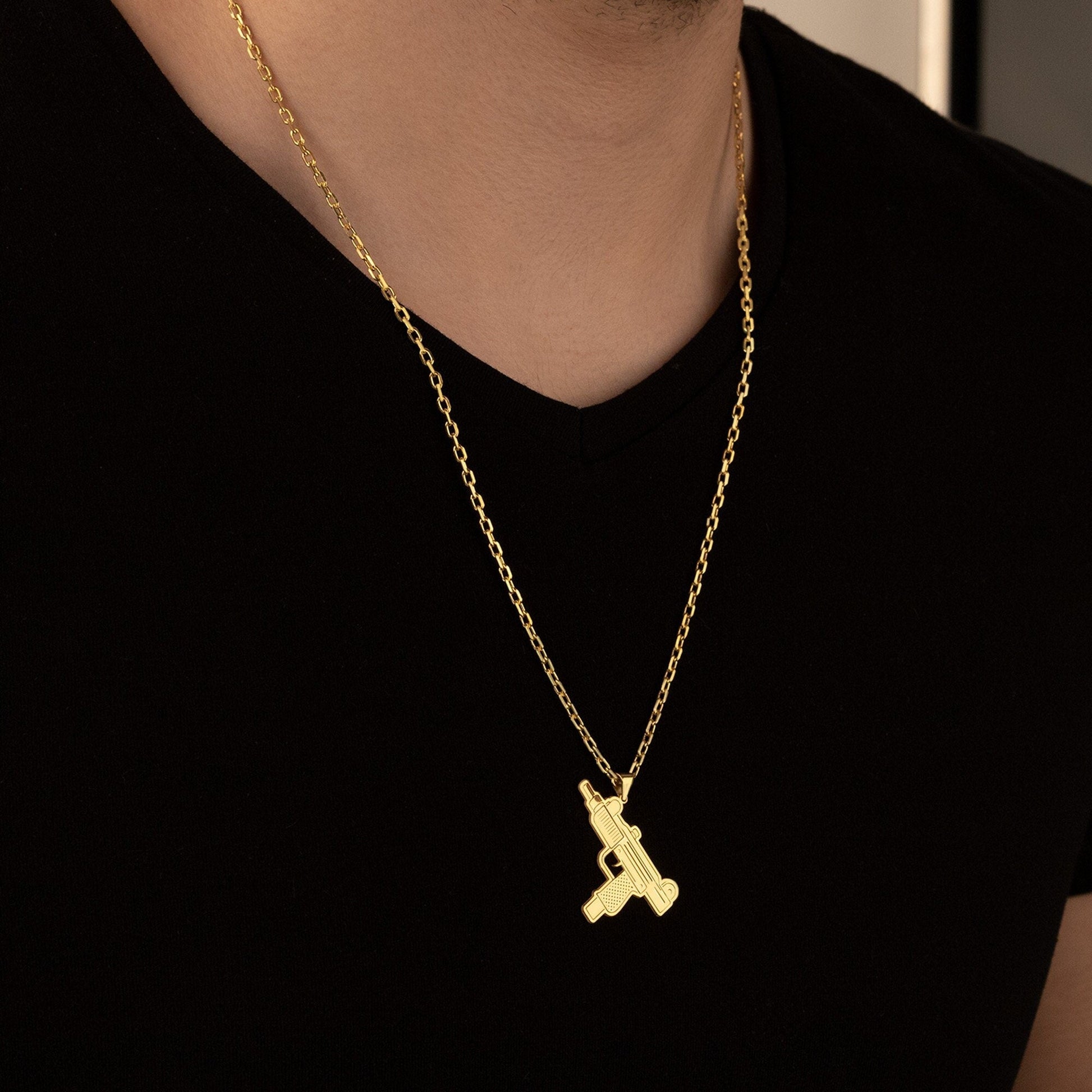 Uzi Gun Pendant - Uzi Necklace - IMI Uzi Necklace - Gun Pistol Necklace - Army Jewelry - Men's Retro Necklace - Gift for Him